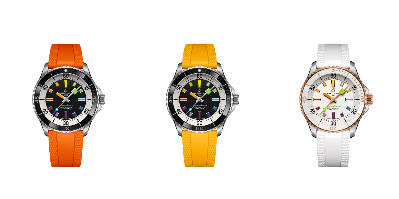 Breitling ve maviliklerin ilişkisi, Superocean Automatic 42 ve 36 gökkuşağı kadranlı modellerin lansmanıyla renkli bir dönüşüm geçiriyor. Ayrıca, çok satan 44 mm turkuaz kadranlı versiyonun yeni bir yorumu da tonsürton bir kayışla lanse ediliyor.