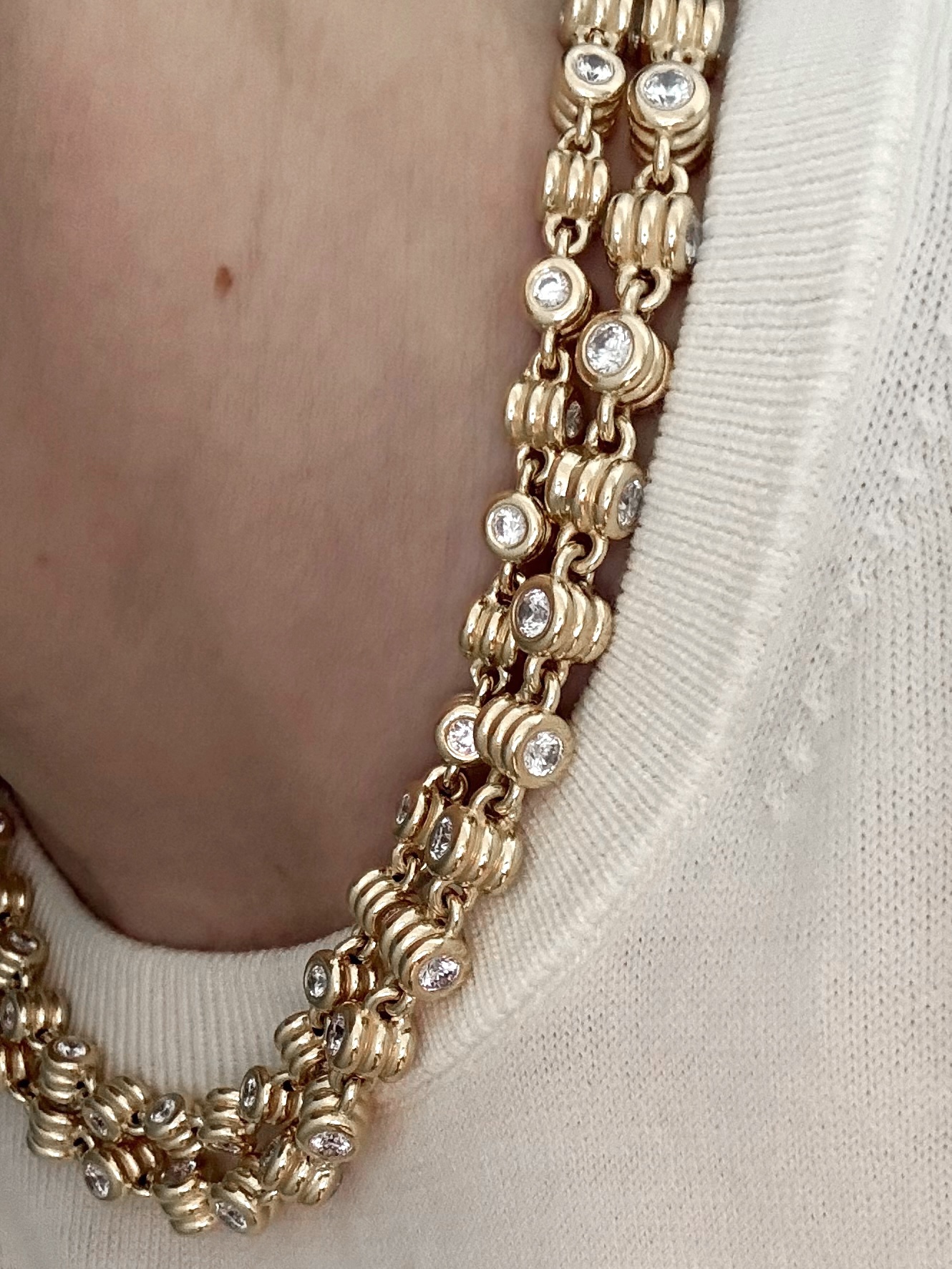 Bunun, detaylarla çalışma biçimimde ortaya çıktığını söyleyebilirim; bir parçaya sadece bakmanın ötesine geçen bir his yaratmakla... Mücevher zaten doğası gereği üç boyutlu ancak benim tasarımlarımda bu özellik daha da belirgin hale geliyor. Parçayı gerçekten anlamak için dokunma ve her açıdan görme isteği doğuyor. Tasarım dilimi heykelsi olarak tanımlayabilirim; iddialı ama rafine ve belirgin bir yapısallığa sahip. Taşların yerleşiminden genel forma kadar detaylar ve açılarla oynamayı seviyorum; bu da parçalara kendine özgü bir silüet kazandırıyor.