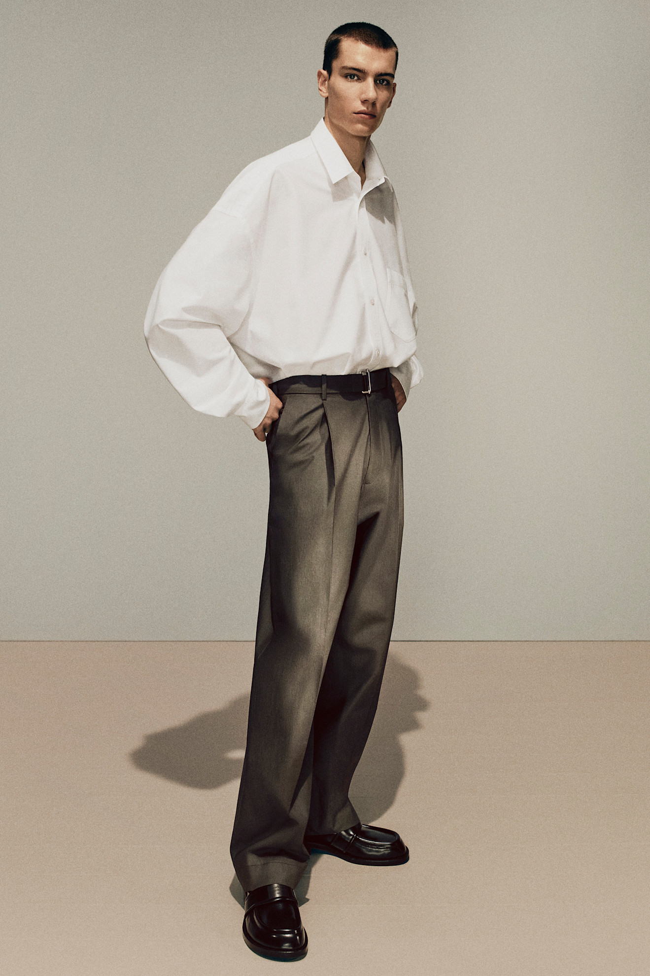 Bol ama dağınık değil. Gövdede daha düz inen bir kesim, daha uzun manşetler ve dik durabilen bir yaka. Erkek gömleği vücudu sarmak yerine çerçeveler. Atlet ve bol paça pantolon üzerine gömleği açık bırakabilirsiniz. Dilerseniz kollarını dirseğe kadar kıvırın. Ya da bir şortolonla bir araya getirerek oranlarla oynayın. Oranlarla oynamak, fazla düşünülmemiş gibi görünen ama aslında oldukça bilinçli bir stil tercihidir.