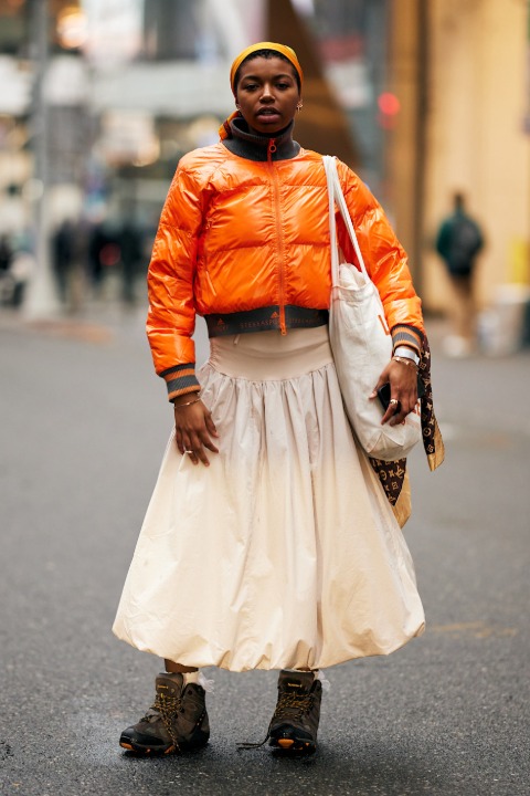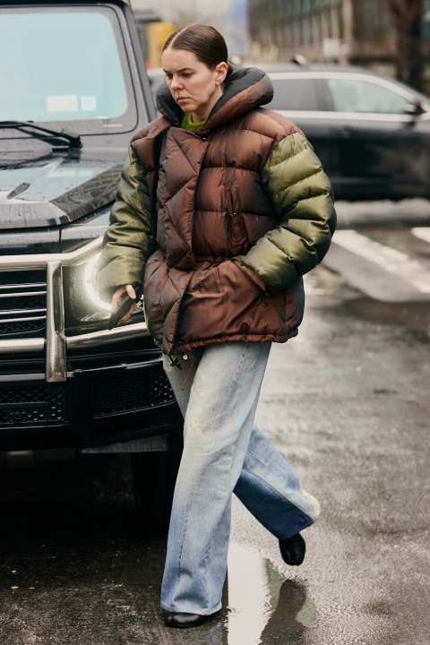 Şişme montu tayt ve spor parçalarla eşleştirmek yerine, beklenmedik parçalarla görünümü güncellemek mümkün. Kış beyazı bir denim pantolon hacimli formu anında dengelerken fitilli kadife pantolonlar kombine doku ve sıcaklık katıyor. Daha cesur bir yaklaşım için ise şişme montunuzu saten ya da ipek bir etekle tamamlayabilirsiniz. Sportif ve feminen dokuların bir araya gelmesi “yanlış ceket” teorisinin en modern yorumlarından birini sunuyor.