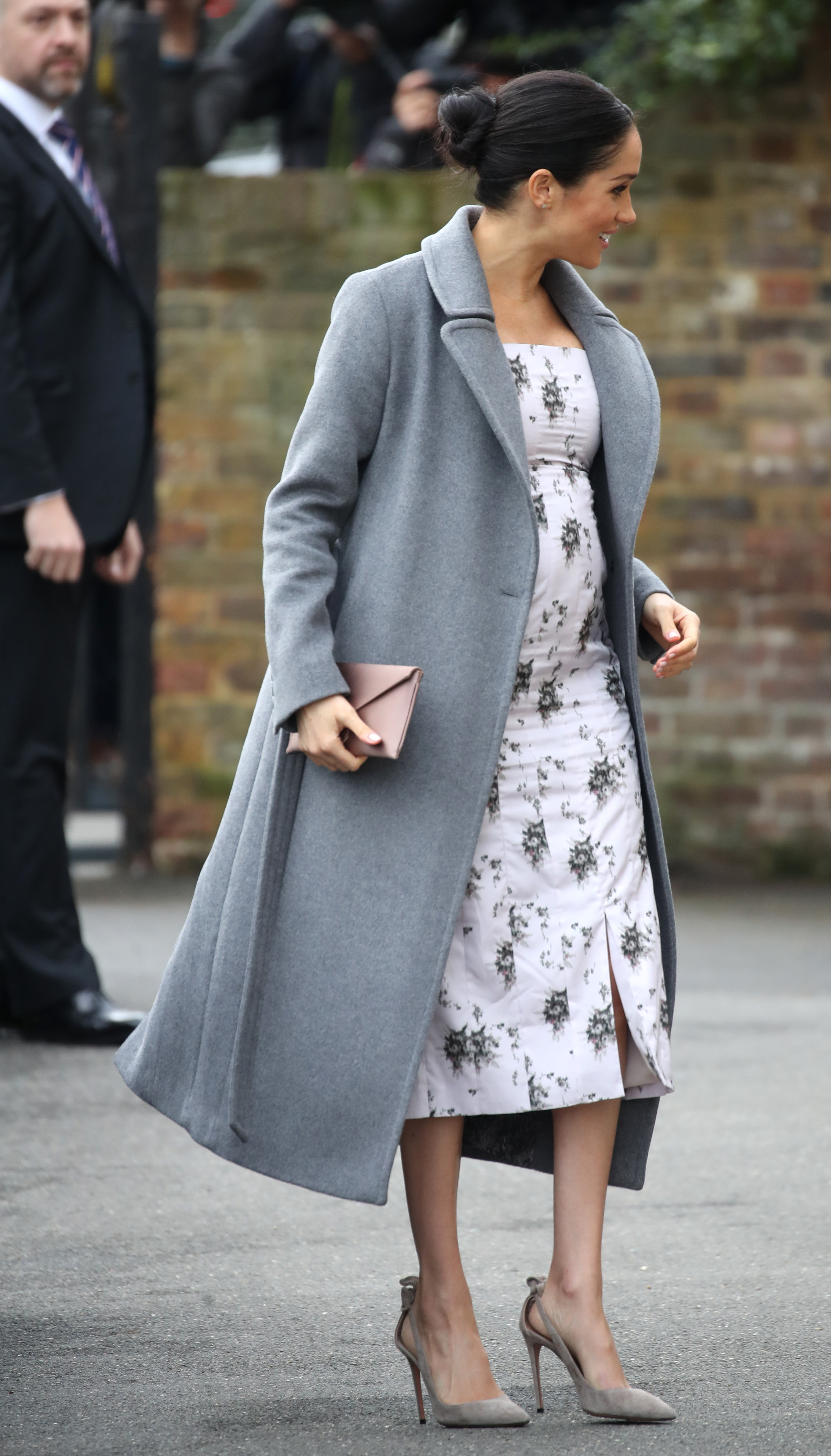 Brock Collection’un Resort 2019 koleksiyonundan giydiği elbisesini Kanadalı marka Soia & Kyo’nun gri paltosu ile tamamlayan Markle, şıklığı ile göz kamaştırdı. Aquazzura’dan süet stilettolar giyen Markle, çiçekli elbiseleri kış sezonuna taşıdı. Çiçek desen aşkımızda yalnız olmadığımızı gösteren Sussex Düşesi, çiçek desenli elbisesi ile bize ilham kaynağı oldu!