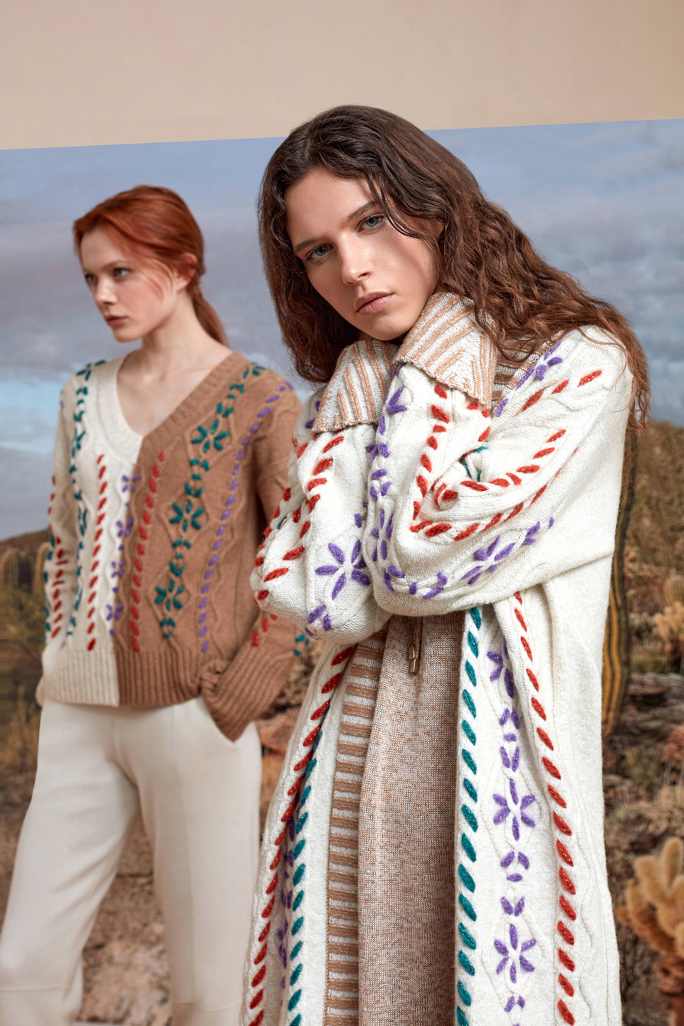 KNITSS’i tanımlayan en temel öğelerden biri de renk. Serene koleksiyonunda bu sezon camel, tarçın, yeşil, siyah, ekru ve mor renklerinin hakim olduğu, fuşya ve pembelerin akılda kalıcı sürpriz kombinleri ve aynı zamanda sadelik ve zarafeti temsil eden bej, gri, ekru gibi zamansız renklerin yer aldığı bir koleksiyon.