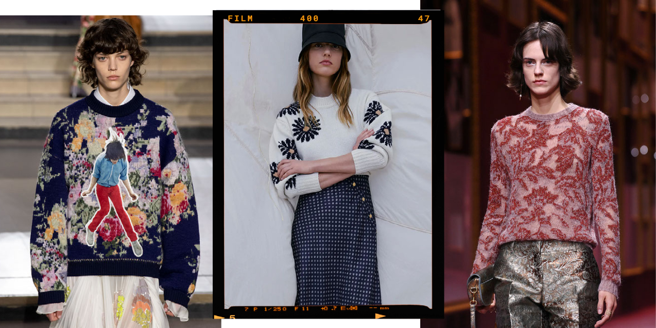 Örgüler üzerindeki çiçek işlemeleri tam olarak yeni değil, aslında zamansız olarak kabul edilebilir. Ancak detayın son birkaç yıldır oldukça sevildiğini söylemek doğru olur. Bu yüzden sezonda, çiçekli kazaklar en şık haliyle dikkat çekmek için yarışıyor. Dior, Sandro, Louis Vuitton podyumunda da kazaklara, şirin çiçek motifleri hakim oluyor.