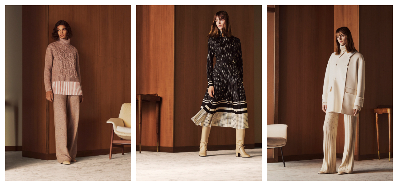 Boğazlı yaka montlar, kabartma motif işleme desenli düğmesiz dış giyim modelleri, yakalardaki örgülü detaylar ve çıkartılabilir örgüler, ropdöşambır hareketinden esinlenen yünlü deri ceketler, montlar, kısa şişme ceketler ve çift katlı parkalar, kalem pardösüler, rahat kesim eteklerle ya da pantolonlar ile kombinlenen dokulu ve dikiş detaylı kazaklar, degrade desenli kazak ve etekler, emprime ipek elbiseler, çizgili gömlekler, pileli etekler... Bütün bunlara aksesuar olarak şık ya da sportif botlar, zıt detaylar içeren mokasenler ve yumuşak derili el çantaları eşlik ediyor.