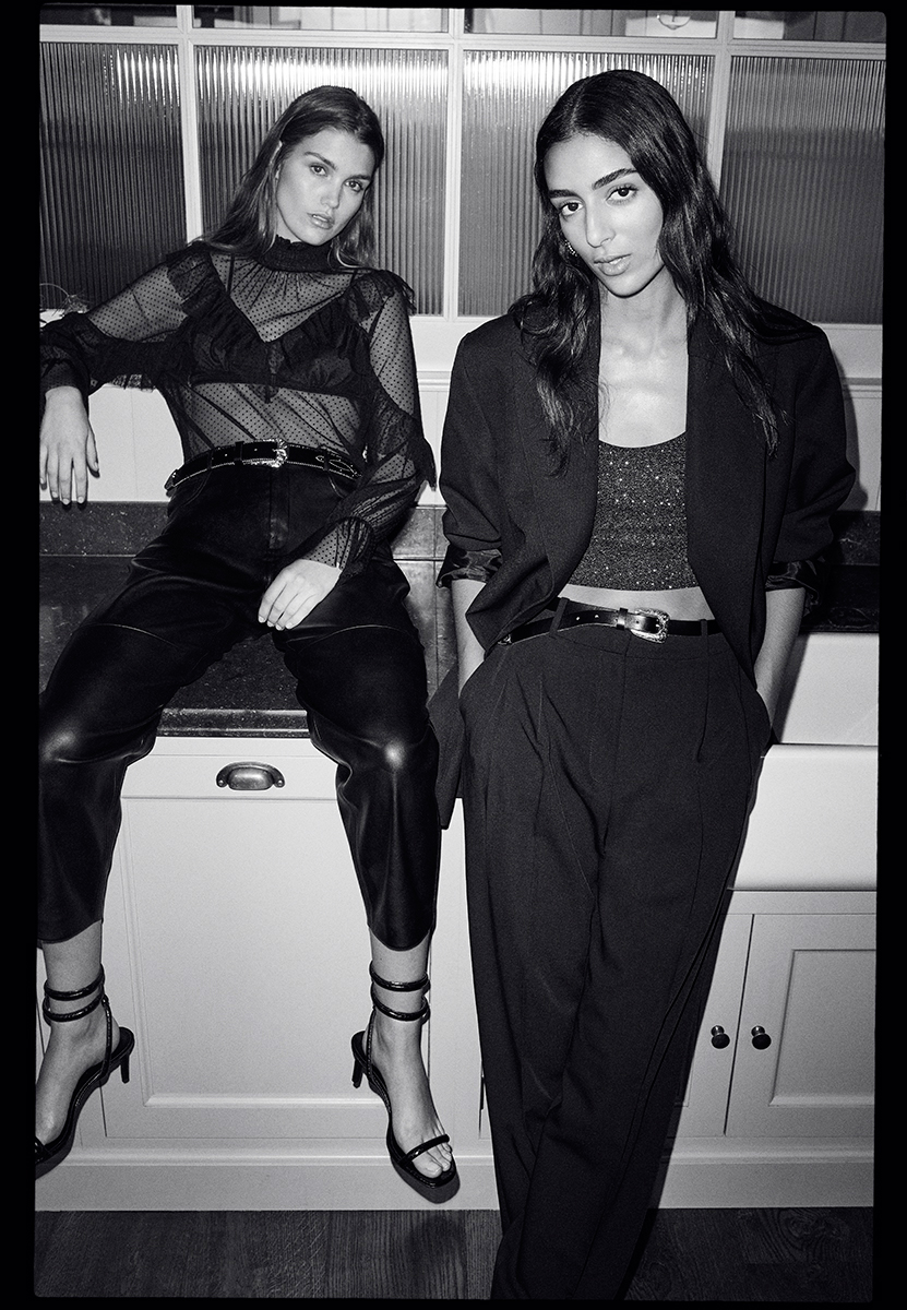 Kadın koleksiyonunda, kadifeler, payetler, parlak kumaşlar başrolde. Ceketler, crop-top’lar ile kombinlenerek daha yumuşak bir görünüm sağlıyor.