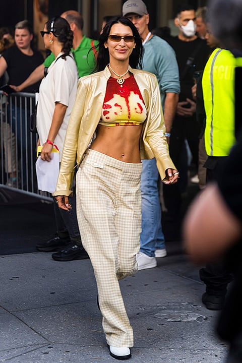 Bella Hadid, genellikle nötr tonlar, denim ve oversize parçalarla sade ama etkili bir şıklık yaratıyor. Street style görünümlerinde deri ceketler, crop top’lar ve klasik sneaker’lar öne çıkıyor; minimal aksesuar seçimleri ise kombinlerini tamamlayıcı bir dokunuş katıyor. Özellikle renk ve dokuda yaptığı kontrastlar, onun stilini zamansız ve hatırlanır kılıyor.