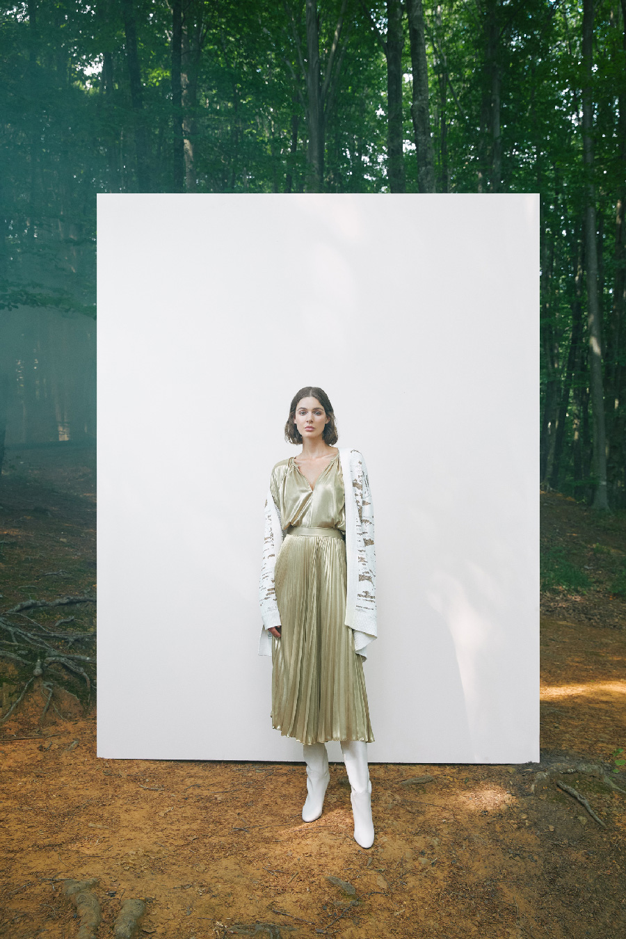 Dingin formlar, yalın siluetler, feminen ve zarif tasarımların öne çıktığı Beymen Collection 2020-2021 Sonbahar - Kış Kadın Koleksiyonu, sezonu lacivert, açık gri ve nude tonlar ile karşılıyor. Koleksiyondaki feminen ve maskülen kombin birliktelikleri, Beymen Collection kadınının güçlü yapısını vurguluyor. Turuncu tonlardaki özel fırça desenli feminen ipek bluz ve elbiseler, lacivert maskülen pardesü ile; romantik nude tül etekler, kruvaze ceketlerle buluşurken, koleksiyonun basic trikoları indigo denimlerle cool, saten eteklerle ise sofistike bir görünüm vaad ediyor. Ceketler klasik tek düğmeden kruvaze’ye, boyfriend modellerden saten dokulara uzanan geniş skalası ile her tarza eşlik ediyor.