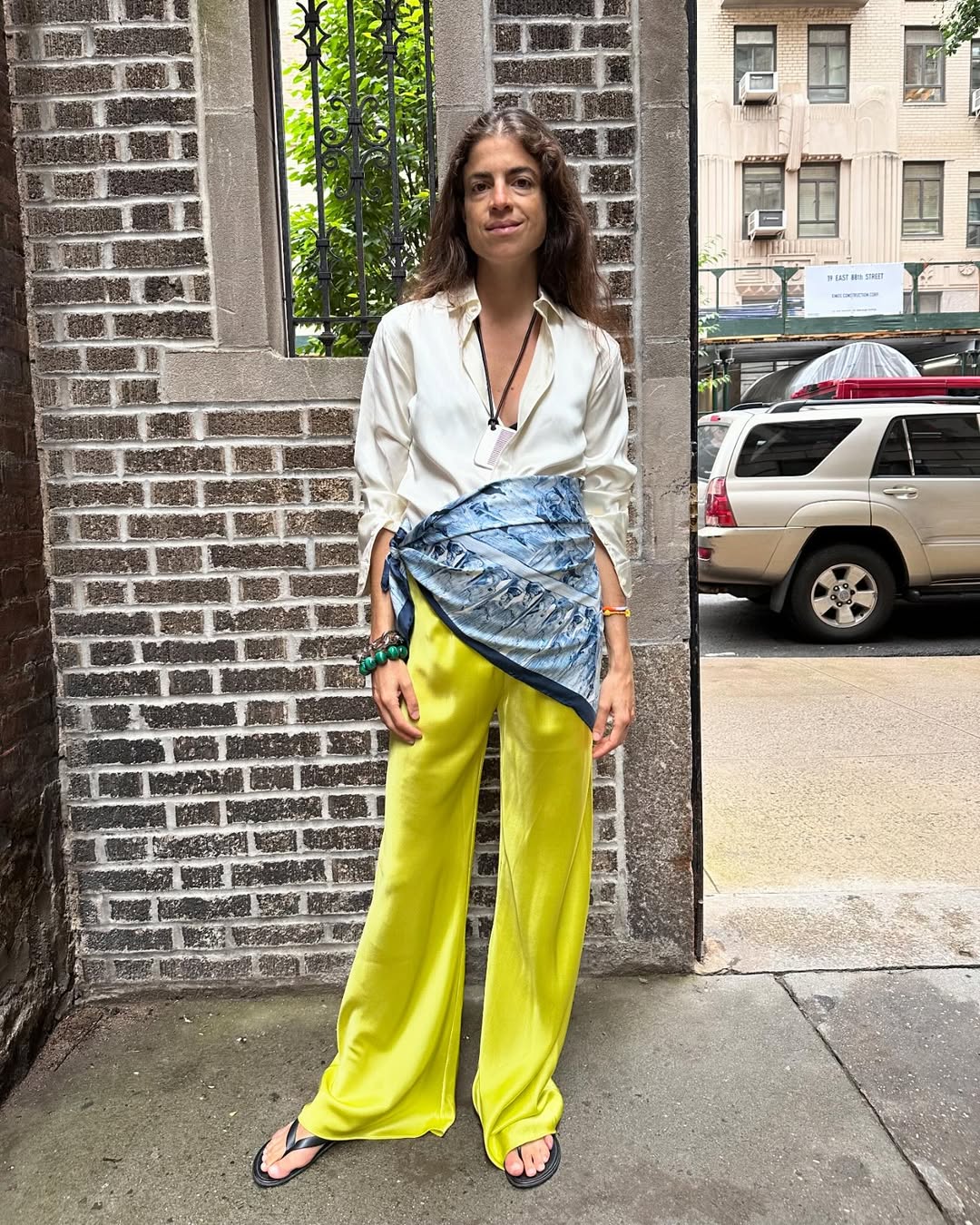 2025 yazının en pratik ve en yaratıcı parçalarından biri eşarplardı. Leandra Medine Cohen ile radarımıza giren, eşarbı bele yan bağlama trendine bütün moda haftalarının sokak görünümlerinde rastladık. Bir gün saç bandı, ertesi gün bluz, başka bir gün mini etek üzerine bağlanan bir katman olarak çok kullanışlı olan eşarplar, hafifliğin ve çok yönlülüğün gücünü hatırlatıyor.