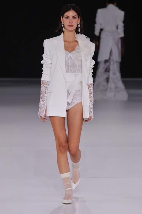 İlkbahar/yaz 2026 defileleri ise bu geleneği günümüze taşıyarak danteli yeniden tanımlıyor. Tasarımcılar bu sezon yapısal formlar ile yumuşak dokuların dengeli birlikteliğine odaklanıyor. Romantik danteller, heykelsi siluetlerin üzerinde hafif bir gölge gibi duruyor; zarafet ile güç arasındaki özgün denge gelinlik estetiğini çağdaş bir çizgiye taşıyor. Görünür korseler ve dışa verilen balenler, son sezonların dikkat çeken detayları olarak varlık göstermeye devam ederken bedeni narince saran üst kısımlar genişleyen eteklere, A-line formlara ya da dökümlü şifonlara akıcı bir geçiş sağlıyor.