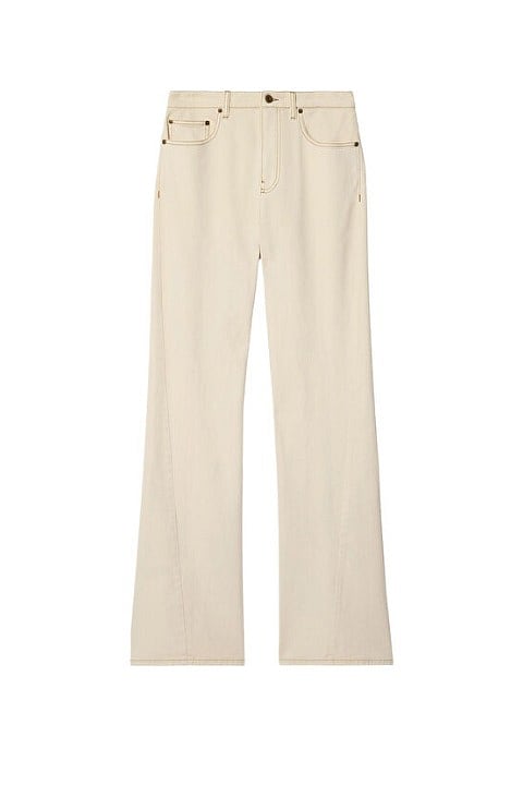 Bu sezon denimin dili silüet üzerinden kuruluyor. Paçalar biraz yukarı çıkıyor, ayakkabıyı görünür kılan uzunluklar öne çıkıyor. Kesimler ise rahat ama formunu koruyan bir yapıda. Bootcut kesimler, bilekleri gösteren paça kesimiyle geri dönüyor. Özellikle kalın tabanlı ayakkabılarla birlikte güçlü bir duruş yaratıyor. 90’lardan tanıdık bu form, bugün daha sade ve daha net bir şekilde yorumlanıyor.