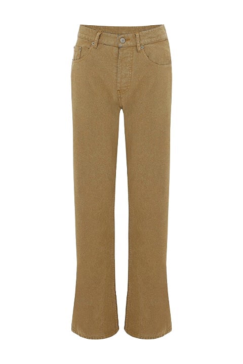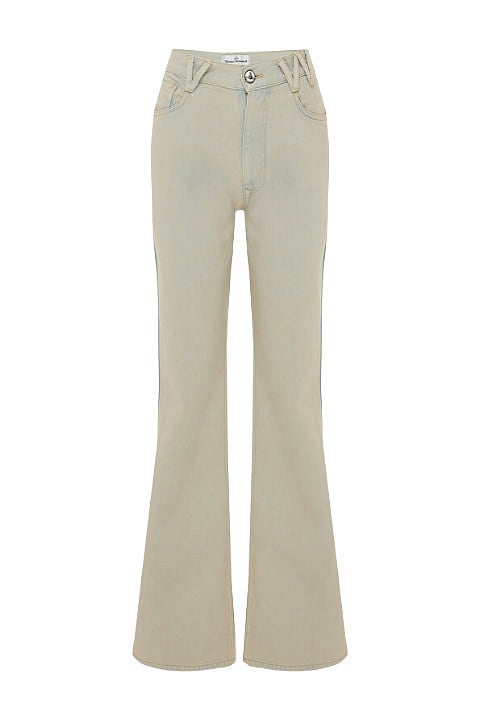 Denim paleti genişliyor. Soluk pastel tonlar, güneşte açılmış gibi görünen yüzeyler ve beklenmedik canlı renkler öne çıkıyor. Agolde ve Still Here gibi markalar, denimi daha ifade odaklı bir alana taşıyor. Renkli pantolonlar sade parçalarla birleştiğinde eğlenceli ve zahmetsiz bir etki yaratıyor.