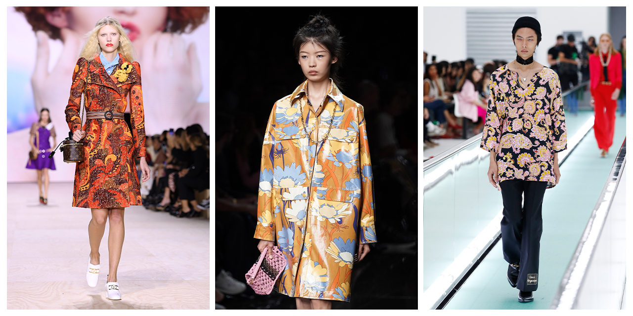 İlkbahar- Yaz 2020 defilelerinde birçok markanın koleksiyonunda rastladığımız 70’ler ilhamlı çiçek desenlerini ikiye ayırabiliriz. Bir tarafta canlı ve kocaman çiçekler ‘psychedelic’ tarzını yansıtırken bir tarafta ise soluk renkli minik çiçek desenleri büyükannelerimizin evlerini andırıyor. Her iki türlü eski sandıklardan yeni çıkmış gibi görünen bu desenler kesinlikle 70’li yılların ruhunu yansıtıyor.