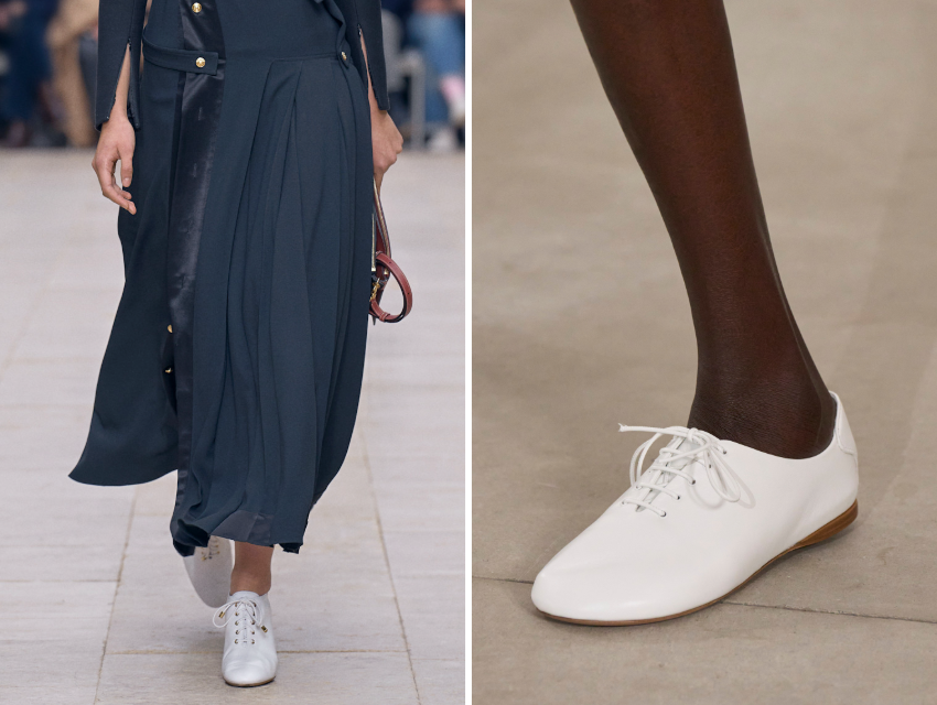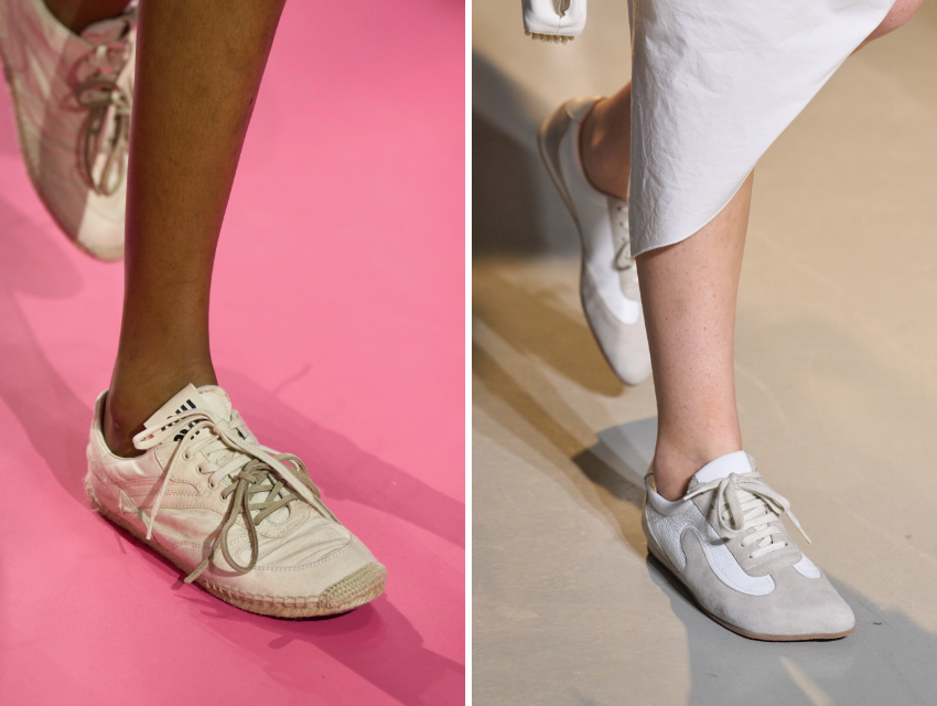 Bir de balletcore estetiğinin bir sonucu olan bale-sneaker’lar var. Sneaker ve bale ayakkabısı arasında bir yerde konumlanan bu yeni nesil modeller, saten yüzeyleri ve yumuşak formuyla daha narin bir estetik sunuyor. Sneakerina trendinin evrimi olarak görülebilecek bu model, feminen dokunuşları gündelik stilin içine dahil etmenin incelikli bir yolu. İnce silüeti ve hafif yapısıyla, sezonun genel eğilimi olan “zarif minimalizm”in de güçlü bir temsilcisi.