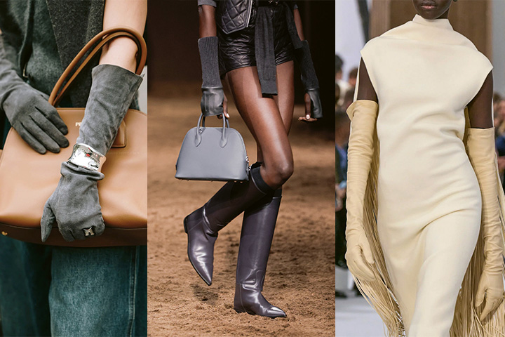 Bugün ise eldivenler yalnızca soyluların değil, sokakların da gücünü taşıyor. Deri, tül, triko ya da file… Her biri farklı bir karakter yaratıyor. Issey Miyake ve Hermès’te triko formlarda, Christian Dior, Max Mara ve Maison Margiela’da ise deri yorumlarıyla yeniden karşımıza çıkıyor. Kimi dirseği aşıyor, kimi avuç içini zarifçe sarıyor…