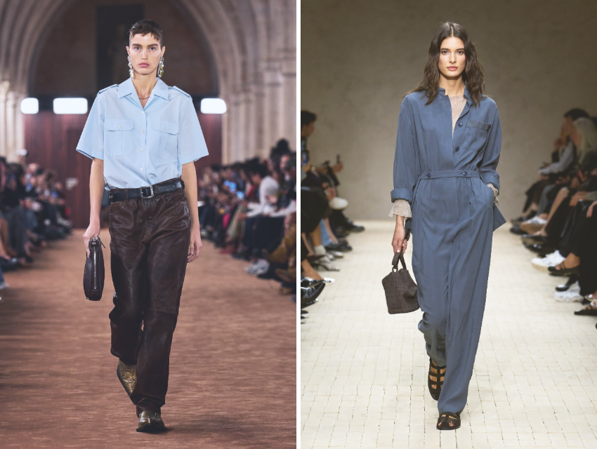 Bu sezon sahneye çıkan yeni güç siluetini açıklıyoruz: işe gider gibi giyinmiş bedenler. Aklınıza vatkalı ceketler, kalem etekler gelmesin, aman! Mavi işçi tulumları, önlükler, kısa kollu sert pamuk gömlekler, ağır kemerler ve üniforma referanslı pantolonların devrinden bahsediyoruz tamamen. Bu parçalar, dünyanın şaşaalı bir kısımdan ibaret olmadığını yansıtmanın yanı sıra, başka hayatların gerçekliklerini yansıtıyor. Aynı zamanda modanın uzun süredir konuşmadığı bir alanı, “emeğin estetiği”ni yeniden görünür kılıyor.