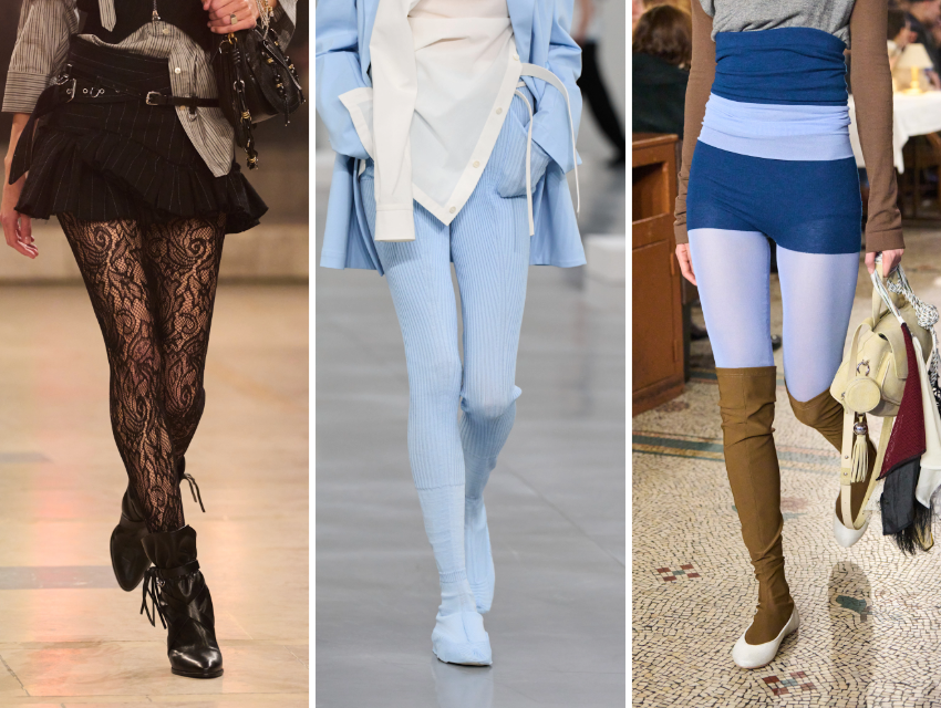 Siyah düz çoraplar klasik olsa da sonbahar/kış 2025 podyumları desenli, dantel veya grafik detaylı çorapları ön plana çıkardı. Hayvan desenleri, kazayağı, slogan veya argyle seçenekleri sonbahar kombinlerinize eğlenceli bir dokunuş katıyor.