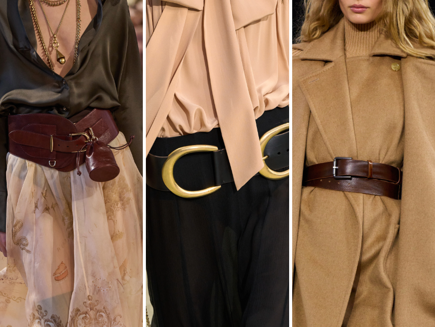 Kemerler artık sadece bir detay değil, kombinin merkezinde yer alıyor. Oversize tokalar, katmanlı kemerler ve korse tarzı geniş modeller, özellikle Jil Sander ve Michael Kors gibi markaların podyumlarında dikkat çekti. Kemerleri sadece belde değil kıyafet üzerinde yaratıcı şekillerde kullanmak sezonun trendlerinden.