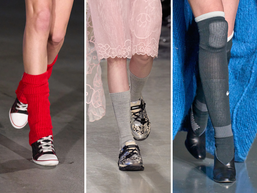 Sıcak çoraplar artık sadece evde pijama ile kalmak için değil. Sonbahar/kış 2025 podyumları, kalın yün çorapları hem günlük loafer ve spor ayakkabılarla hem de şık stiletto’larla kombinleyebileceğimizi gösterdi. Miu Miu veya Valentino defilelerinde gördüğümüz farklı modeller klasik siluetleri eğlenceli bir şekilde yorumlamak için örnek oldu. Diz çorapları hem oyunbaz hem de şık bir görünüm yaratmanın kolay bir yolu.