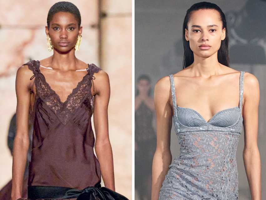 Bu yeniden keşif, defilelerde son yılların en güçlü estetik dönüşümlerinden biri haline geldi. Sonbahar/Kış 2025 sezonu, dantelin sadece romantik değil, aynı zamanda iddialı bir güç göstergesi olabileceğini kanıtlayan bir sahne gibiydi. Saint Laurent ve Louis Vuitton’un zarif gece elbiseleri romantik bir hava yaratıyor, Marine Serre ise danteli modern siluetlerle birleştirerek geçmiş ve gelecek arasında köprü kuran bir malzemeye dönüştürüyor. Rabanne’ın metalik yüzeylerle kontrast yarattığı danteller materyalin sınırlarını yeniden tanımlıyor; Carolina Herrera ise geleneksel feminen çizgiyi güncel şehirli bir zarafetle güncelliyor. Bu sezon dantel, sadece bir süsleme değil, her marka için kendi kimliğini yeniden tarif eden bir anlatım aracına dönüşmüş durumda.