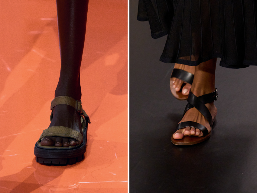 İlham kaynakları tanıdık: 90’ların minimalizmi yeniden yükselişte. Özellikle "Love Story" etrafında yeniden canlanan nostaljik estetik, sade silüetleri tekrar gündeme taşıyor. Aynı anda maksimalist yaklaşım da güçlü; dikkat çeken topuklar ve hacimli formlar, sandaletleri başlı başına bir stil ifadesine dönüştürüyor. Simone Rocha, Fendi ve Proenza Schouler bu yaklaşımın öne çıkan örneklerini sunuyor.