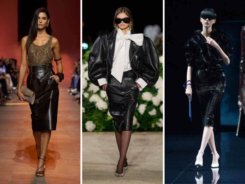 Sonbahar/kış 2025 defilelerinde hissedilen genel atmosfer, ofis giyiminin yeniden sahiplenildiğini gösteriyordu: geniş omuzlu ceketler, parlak deri loafer’lar, kusursuz gömlekler… Ancak tüm bu parçalar arasında kalem etek, güçlü bir dönüş yapan parçalar arasında öne çıkabildi. Çünkü artık mesele yalnızca işe ne giydiğimiz değil, kendimizi nasıl ifade ettiğimiz.