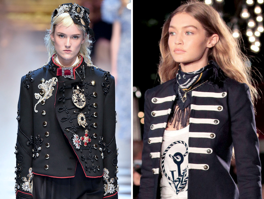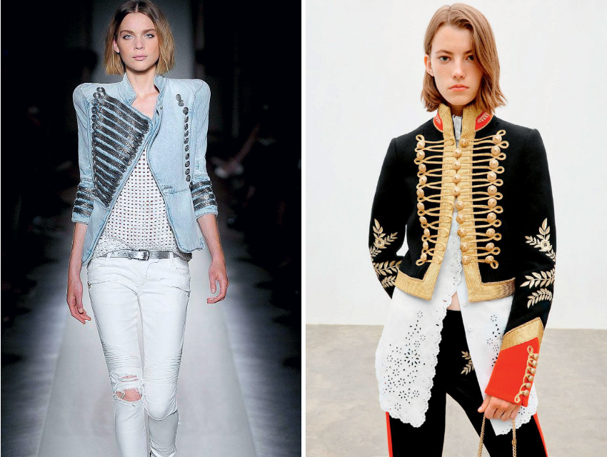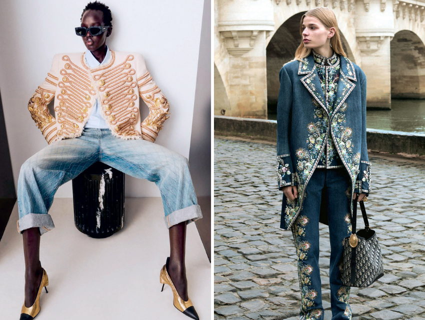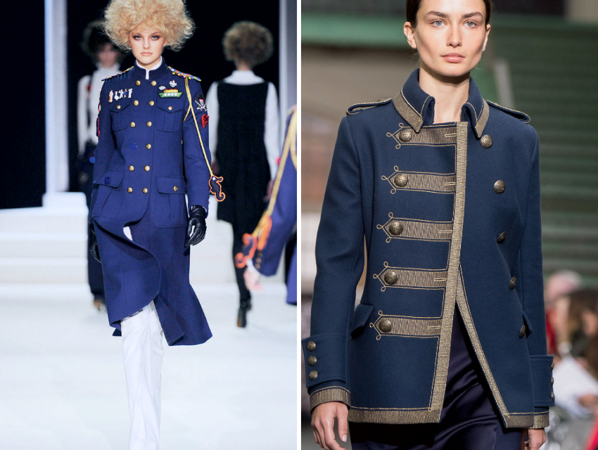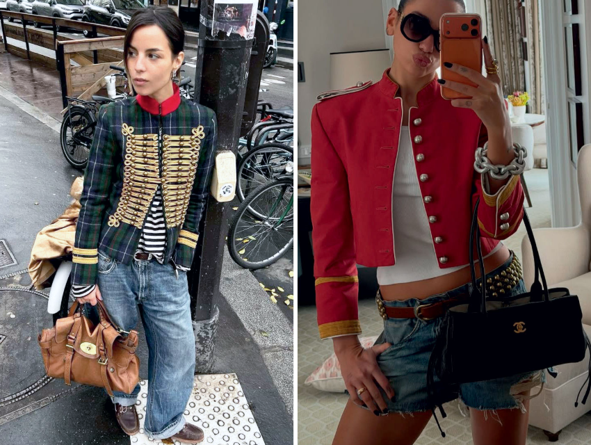 Militer ceketin kökeni net: Napolyon dönemi subay üniformaları. İşlevle estetiğin aynı çizgide buluştuğu bu tasarımlar, vücuda oturan kesimleri ve dekoratif ama ölçülü detaylarıyla askeri disiplinin görsel karşılığıydı. 20. yüzyıla gelindiğinde ise bu katı yapı, modanın oyun alanına taşındı. Jean Paul Gaultier, John Galliano ve Vivienne Westwood gibi isimler askeri ceketi birebir yeniden üretmek yerine onu bozarak yorumladı. 2000’lerin başında Christophe Decarnin’in Balmain’de yarattığı silüet militer ceketi neredeyse rock yıldızı üniformasına dönüştürdü. Güçlü omuzlar, dar bel hatları ve abartılı süslemeler, askeri referansı teatral bir ihtişama taşıdı. Bu dönem, ceketin podyumdan sokağa indiği kırılma noktasıydı.