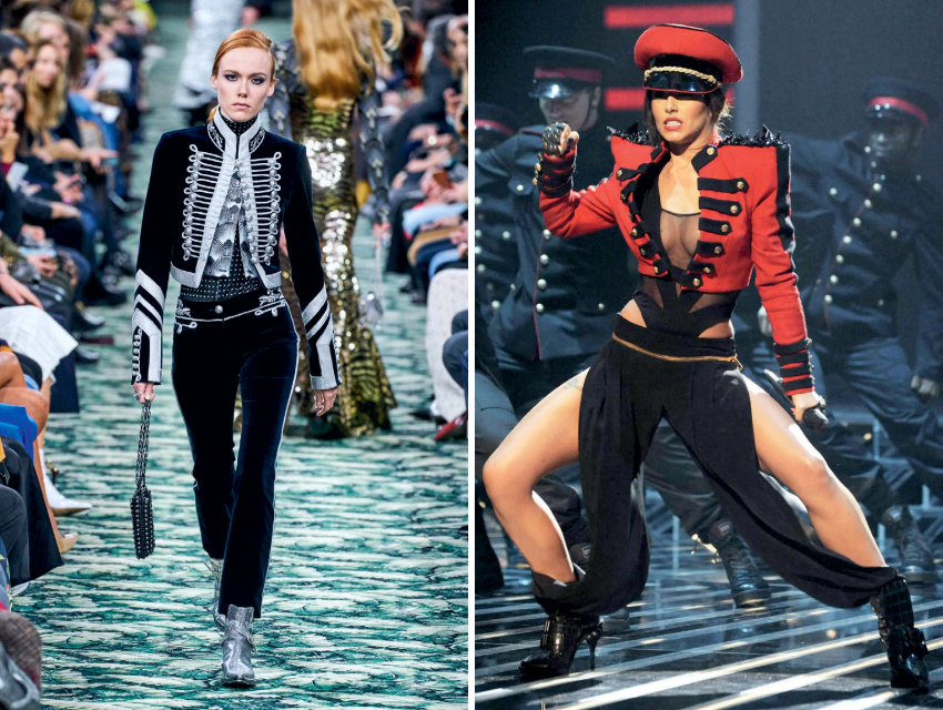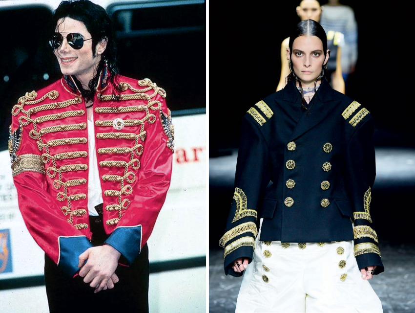 Aynı yıllarda pop kültür ve müzik sahnesi de bu estetiği sahiplendi. Militer ceket denilince akla gelen ilk figürlerden biri kuşkusuz Michael Jackson. Sahne kostümünden çok daha fazlası olan bu ceketler; altın işlemeleri, keskin omuzları ve belirgin düğmeleriyle onun imzasına dönüştü. Jackson, askeri ceketleri küresel ölçekte ikonikleştiren bir isim olmuştu o dönemlerde. Bu miras kısa sürede pop kültürün geneline de yayıldı pek tabii. Cheryl’den Beyoncé’ye, Lady Gaga’dan Kate Moss’a kadar pek çok isim konser sahnelerinde, turne kostümlerinde ve gündelik stilinde benimsedi bu ceketleri. Kimi zaman sahneye hükmeden teatral bir parça, kimi zaman jean ve tişörtle tamamlanan zahmetsiz bir stil unsuru olarak kullanıldı. Böylece üniforma, otoriteyi temsil eden bir simge olmaktan çıkıp kişisel ifade biçimine dönüştü; disiplin, karakterle yer değiştirdi.