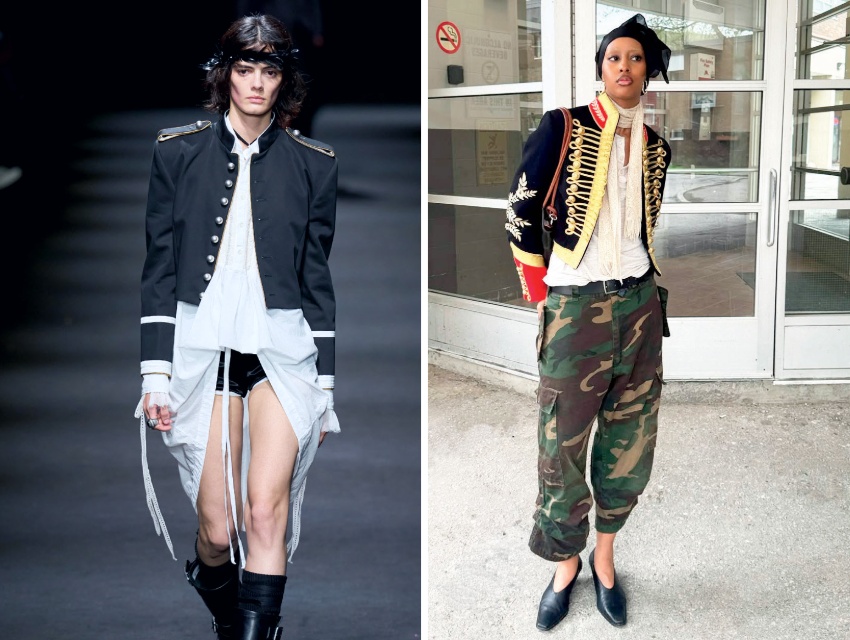 Ortaya çıkan tablo net: Militer ceket artık bir rol kostümü değil. Daha kısa kesimler, alışılmadık renkler, hafifletilmiş kumaşlar ve parçalanmış detaylarla askeri disiplin yumuşatılıyor. Güç hâlâ orada, ama sesini yükseltmeden var olmayı tercih ediyor.