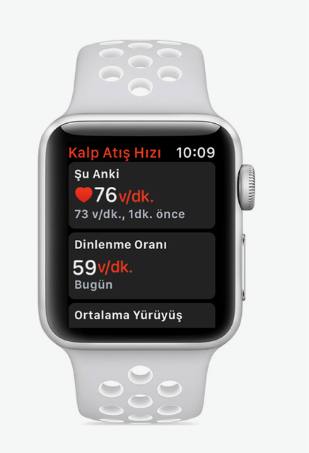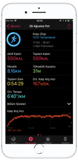 Koşarken kondisyonumuzu belirleyen önemli ölçümlerden biri ise kalp atış hızımız. Kalp Atış Hızı uygulamasını kullanarak kalp atış hızınızı istediğiniz zaman kontrol edebilirsiniz. Uygulamayı açıp Apple Watch'un kalp atış hızınızı ölçmesini bekleyin. Ayrıca gün boyunca dinlenme, yürüme, nefes egzersizi, antrenman ve iyileşme sırasındaki kalp atış hızınızı da görüntüleyebilirsiniz. Antrenman uygulamasını kullandığınızda Apple Watch, kalp atış hızınızı antrenman sırasında sürekli ölçüyor; kalp atışınızın iyileşme hızını belirlemek için de antrenman bittikten sonraki 3 dakika boyunca ölçmeye devam ediyor. Ek olarak, Apple Watch, hareketsiz olduğunuzda gün boyunca, yürüdüğünüzde ise düzenli olarak kalp atış hızınızı ölçüyor.