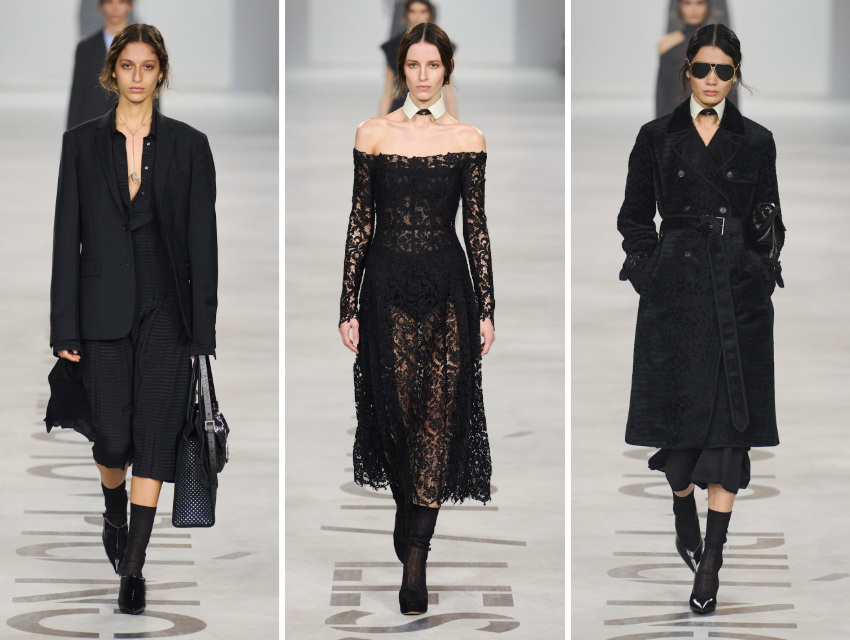 Sezonun odağında kreatif direktörlerin başlangıç koleksiyonları vardı. Maria Grazia Chiuri, Fendi için hazırladığı ilk koleksiyonda monokrom bir palet seçti. Siyahın hakimiyeti altında silüet ve kesim ön plana çıktı. Bale etekleri, dantel detaylar ve güçlü terzilik, markanın arşiv kodlarıyla Chiuri’nin estetik dilini buluşturdu.