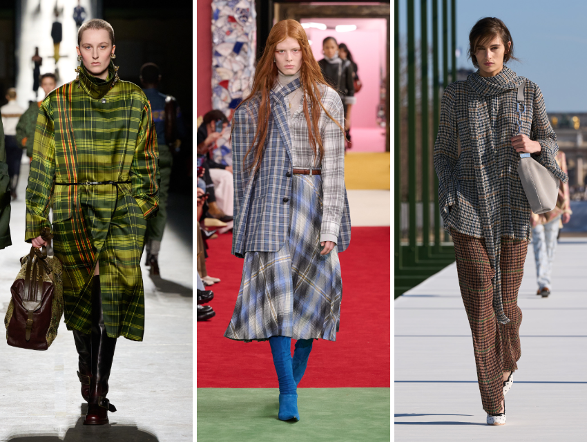 Ekose desen modada hiçbir zaman kaybolmuyor, ara ara farklı stillerde kendini göstermenin yolunu buluyor. Ekose bu sezon da Paris’te güçlü bir geri dönüş yaptı. Louis Vuitton’un gök mavisi tonlarındaki ekose etek takımları ve Dries Van Noten’in daha koyu paletleri bu klasik deseni güncel bir şekilde yorumluyor. Bazı markalar ise bir adım ileri gidip bu sezon sıkça karşılaştığımız katmanlama stratejisine uyarak, birden fazla ekoseyi aynı görünümde bir araya getirdi. Acne Studios ve Dior’da görülen bu yaklaşım, desene daha deneysel bir karakter kazandırıyor.