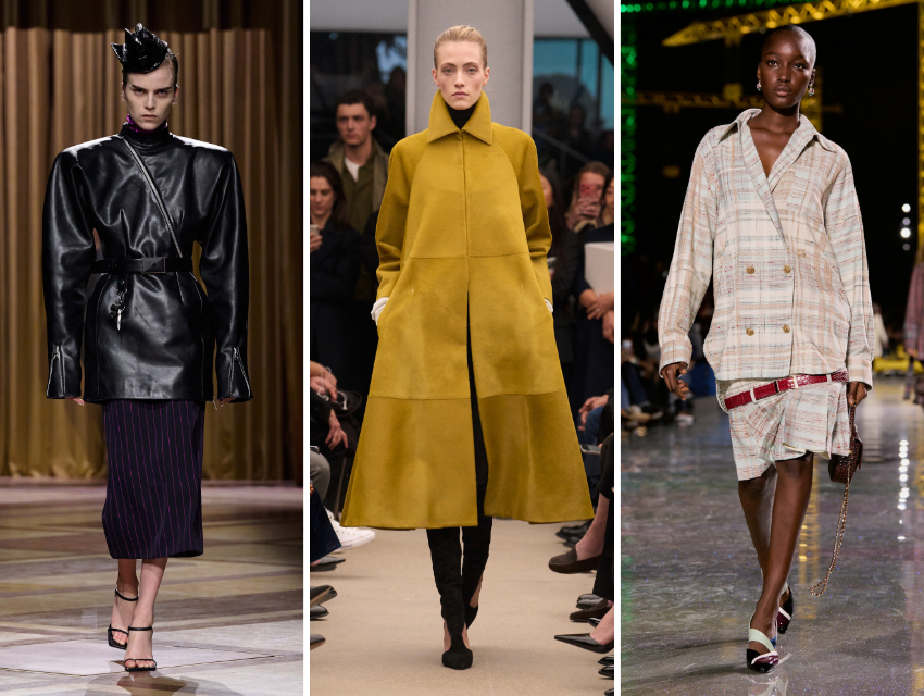 Bu sezonun en dikkat çekici eğilimlerinden biri keskin terzilikti. Güçlü omuzlar, net kesimli ceketler ve maskülen takımlar birçok koleksiyonda öne çıktı. Saint Laurent, Givenchy ve Dior gibi markalar bu yaklaşımı modern bir güç silüeti olarak yorumlarken, Victoria Beckham daha minimal ve akıcı versiyonlarını sundu. Takım elbise artık yalnızca ofis giyimi değil, güçlü ve modern bir gardırobun merkez parçası.