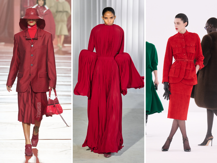Renk paletinde en öne çıkan ton ise güçlü bir kırmızıydı. Morların, yeşillerin, sarıların arasında özellikle canlı kırmızı tonları birçok koleksiyonda dikkat çekti. Tom Ford ve Jean Paul Gaultier bu rengi baştan aşağı monokrom görünümlerle kullandı. Lacoste ve Celine ise kırmızıyı aralarda kullanarak görünümlerin öne çıkmasını sağladı.