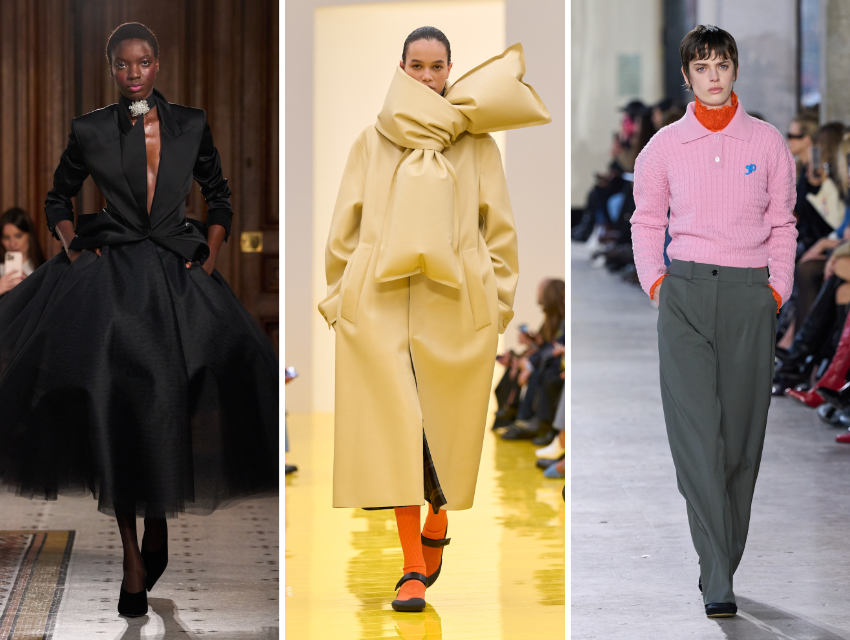 Paris her zaman olduğu gibi dramatik silüetleriyle de öne çıktı. Güçlü omuzlar, hacimli formlar ve deneysel kesimler birçok koleksiyonda dikkat çekti. Mugler güçlü omuzlarıyla markanın 80’ler DNA’sını sürdürürken, Chanel bel hizasını aşağı çekerek silüetin proporsiyonlarıyla oynuyor.