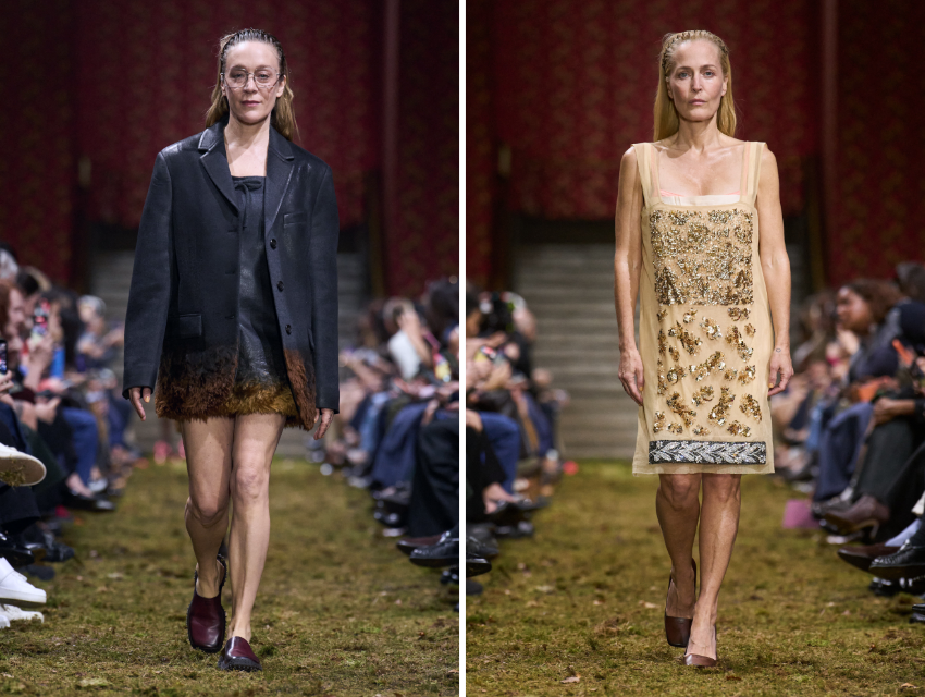Bu sezon yalnızca modeller değil, farklı disiplinlerden gelen isimler de podyumdaydı. Gillian Anderson ve Chloë Sevigny gibi figürlerin Miu Miu defilesinde yer alması ya da Carolina Herrera’da sanatçıların podyuma çıkması, temsil meselesini daha geniş bir çerçeveye taşıyor.
