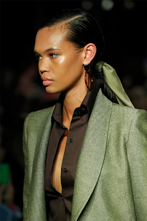 At kuyruğu vazgeçemediğiniz saç stilleri arasındaysa saç fularlarını deneyin! Topuzlarda ve at kuyruğu modellerinde harika görünen saç fularları, Sonbahar 2020 defilelerinde de görülen stiller arasında yer aldı. Saten kurdeleler ile deneyebileceğiniz bu stil ile lastik tokalarınızı gizleyebilirsiniz.