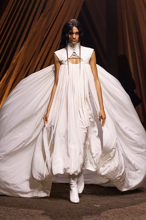 Bugün pek çok tasarımcı, koleksiyonlarına gelinlik hissi taşıyan parçalar ekliyor. Akışkan beyaz elbiseler, heykelsi kesimler, dantel yorumları ya da minimal silüetler… Tüm bu detaylar, klasik gelinlik algısını dönüştürerek daha kişisel ve güncel bir dil kuruyor. Jonathan Anderson ve Matthieu Blazy gibi isimlerin yaklaşımı da tam olarak bu noktada devreye giriyor: Gelinliği bir kategori olmaktan çıkarıp koleksiyonun doğal bir uzantısı haline getirmek.