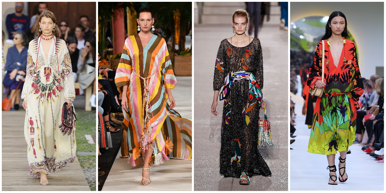 Birçok markanın İlkbahar Yaz 2020 defilelerinde gördüğümüz kaftanlar, sadece bir plaj elbisesi olmadığını kanıtlayarak hem gece hem de günlük stil ile uyum sağladığını gösterdi. Etro defilesinde etnik takılar ve çantalar, Oscar de la Renta defilesinde ince bantlı topuklu ayakkabılar ve ‘statement’ küpeler, Missoni defilesinde renkli fularlar ve püsküllü çantalar, son olarak Valentino defilesinde ipli sandaletler ve kutu çantalar ile eşleştirilen desenli ve dokulu kaftan elbiseler, değişken bir yaz kıyafeti alternatifi olabilir. Tıpkı oversized veya bol kesim elbiseler gibi konfor özelliğinin öne çıktığı bu elbise tarzında aynı zamanda desenler ve işlemeler başrolde oynuyor. Etnik ama aynı zamanda ultra şık olan kaftan elbiseler yeni sezon gardırobunuzda yer edinmeyi hak ediyor!