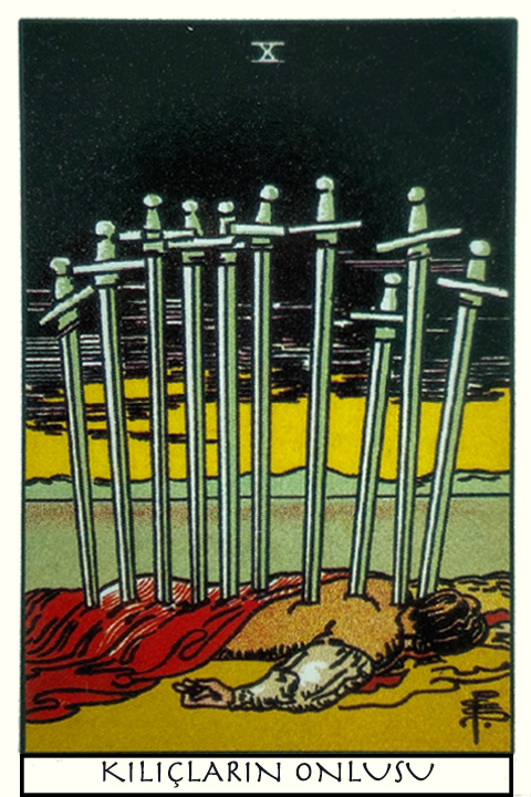 Olumsuz anlamları çağrıştıran bu kart sırtınızdan vurulmuş olduğunuzu başka bir deyişle ihanet, hırsızlık veya yalana maruz kalmış olabileceğinizi de gösterir. Bir tür dibe vurmuş olma hissi söz konusu olabilir. Bir kayba, terkediliş veya ayrılığa da maruz kalmış olabilirsiniz.