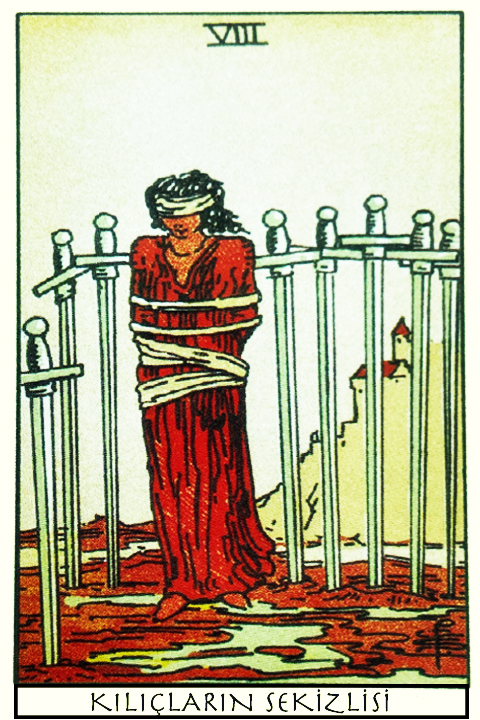 İçinde bulunduğunuz şartlarda eliniz kolunuz bağlı şekilde hissedebilirsiniz. Negatif anlamlar taşıyabilecek bu kart bir kaza veya elim bir olayla da ilişkilendirilebilir. Sıkıntılarınızın üstesinden gelmek için cesur ve metin olmalı, korku ve kaygılarınızla yüzleşmelisiniz.