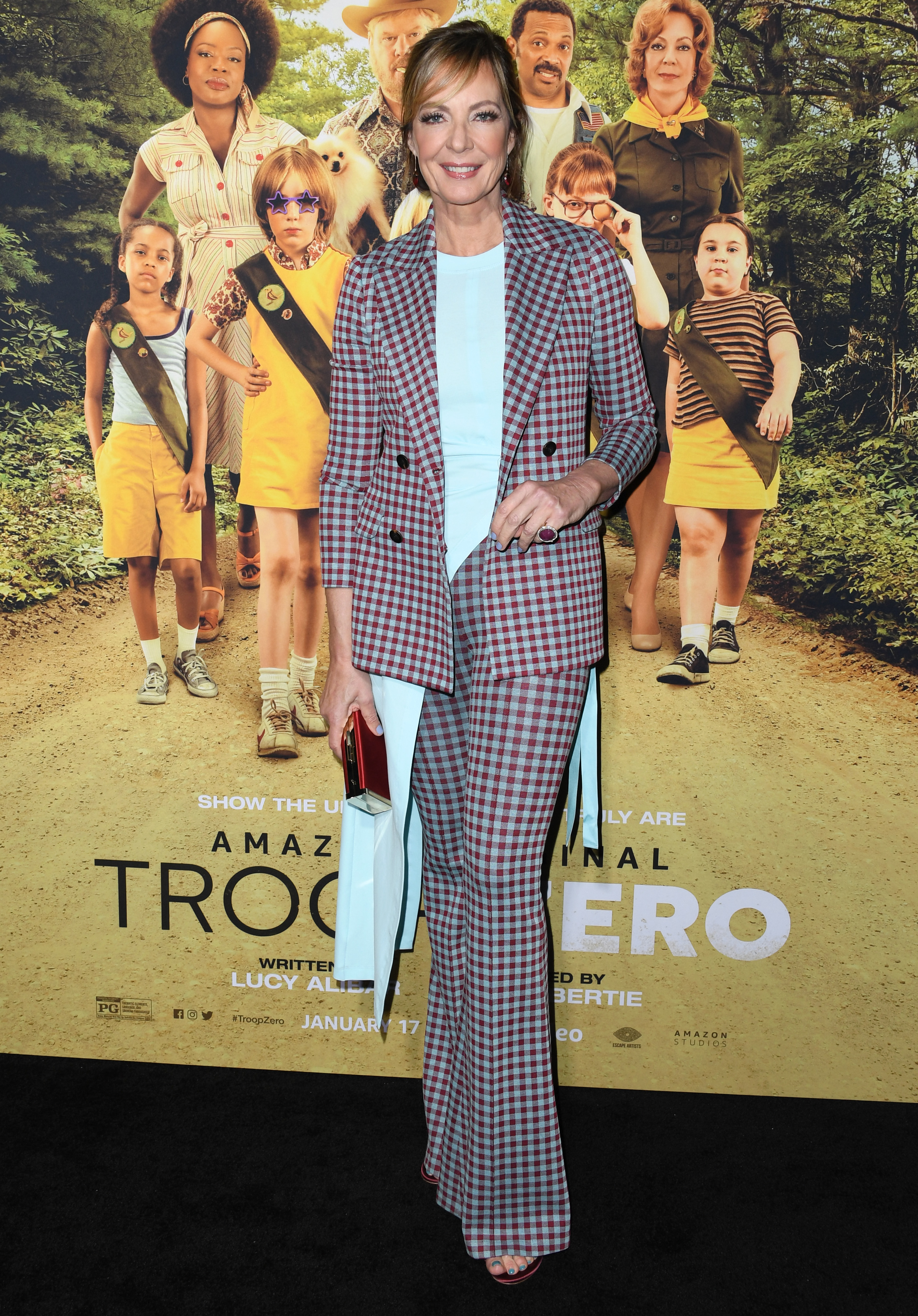 Allison Janney, ‘Troop Zero’ filminin Los Angeles gösterimi için Rosetta Getty’den desenli bir takım elbise giydi.