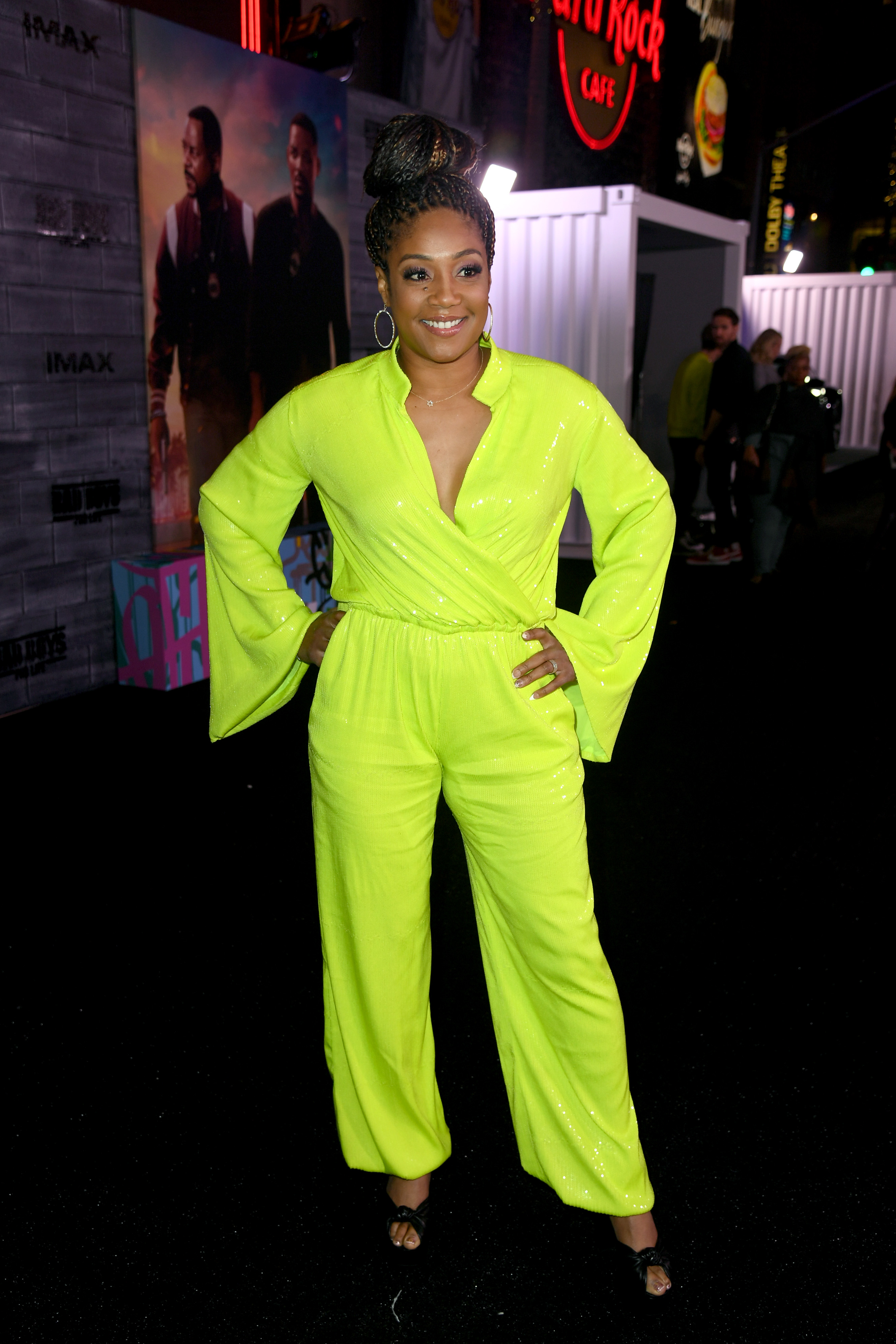 Tiffany Haddish, ‘Bad Boys For Life’ filminin Hollywood gösterimi için Greta Constantine’in Resort 2020 koleksiyonundan neon bir tulum giydi.