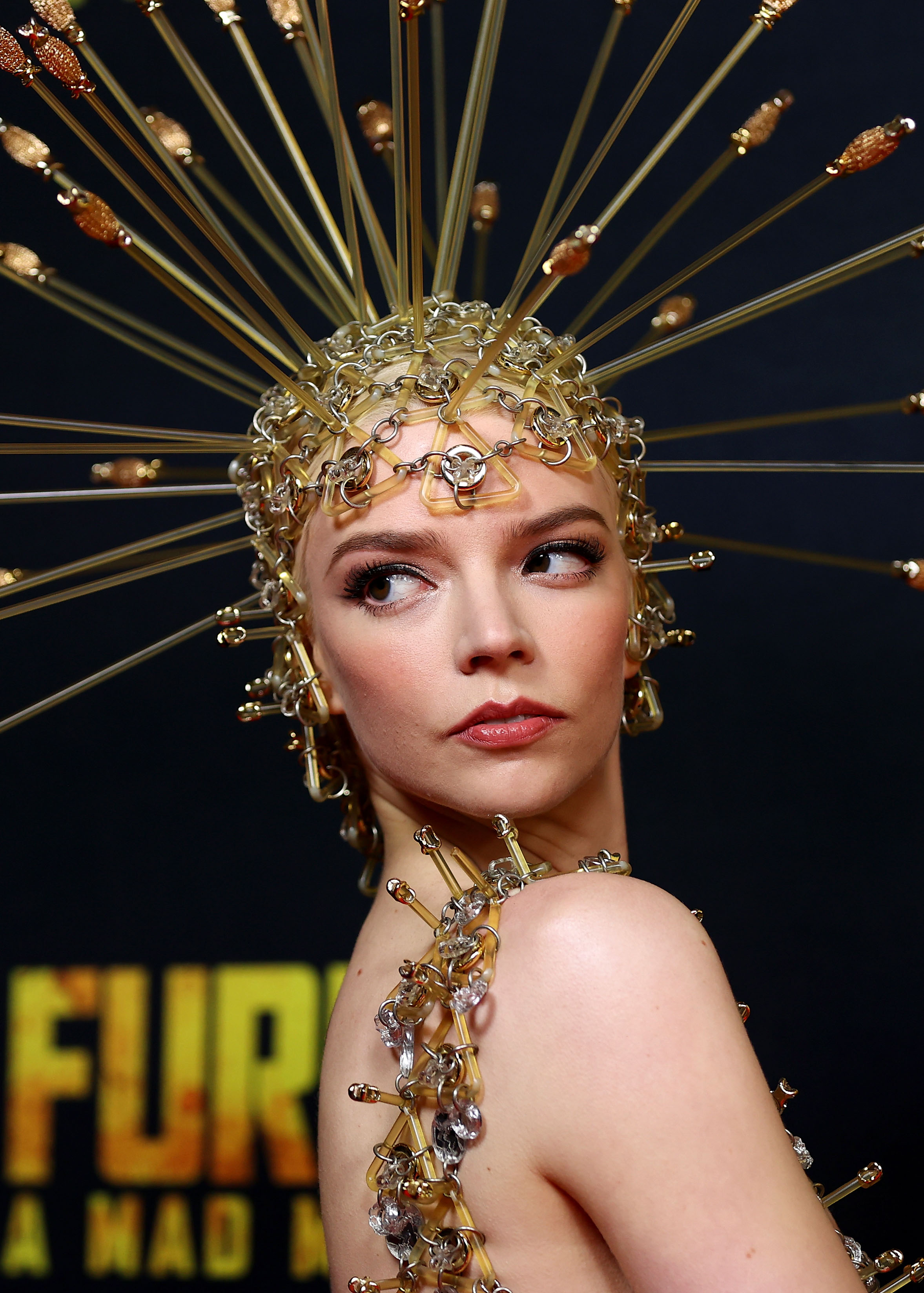 Anya Taylor-Joy, yeni filmi Furiosa: A Mad Max Saga'nın tanıtımını için vintage bir savaşçı görünümü tercih etti.. Aktris, Sidney'de Paco Rabanne'nin 1996 ilkbahar couture koleksiyonundan altın oklarla süslenmiş bir mini elbise ile kırmızı halıdaydı.