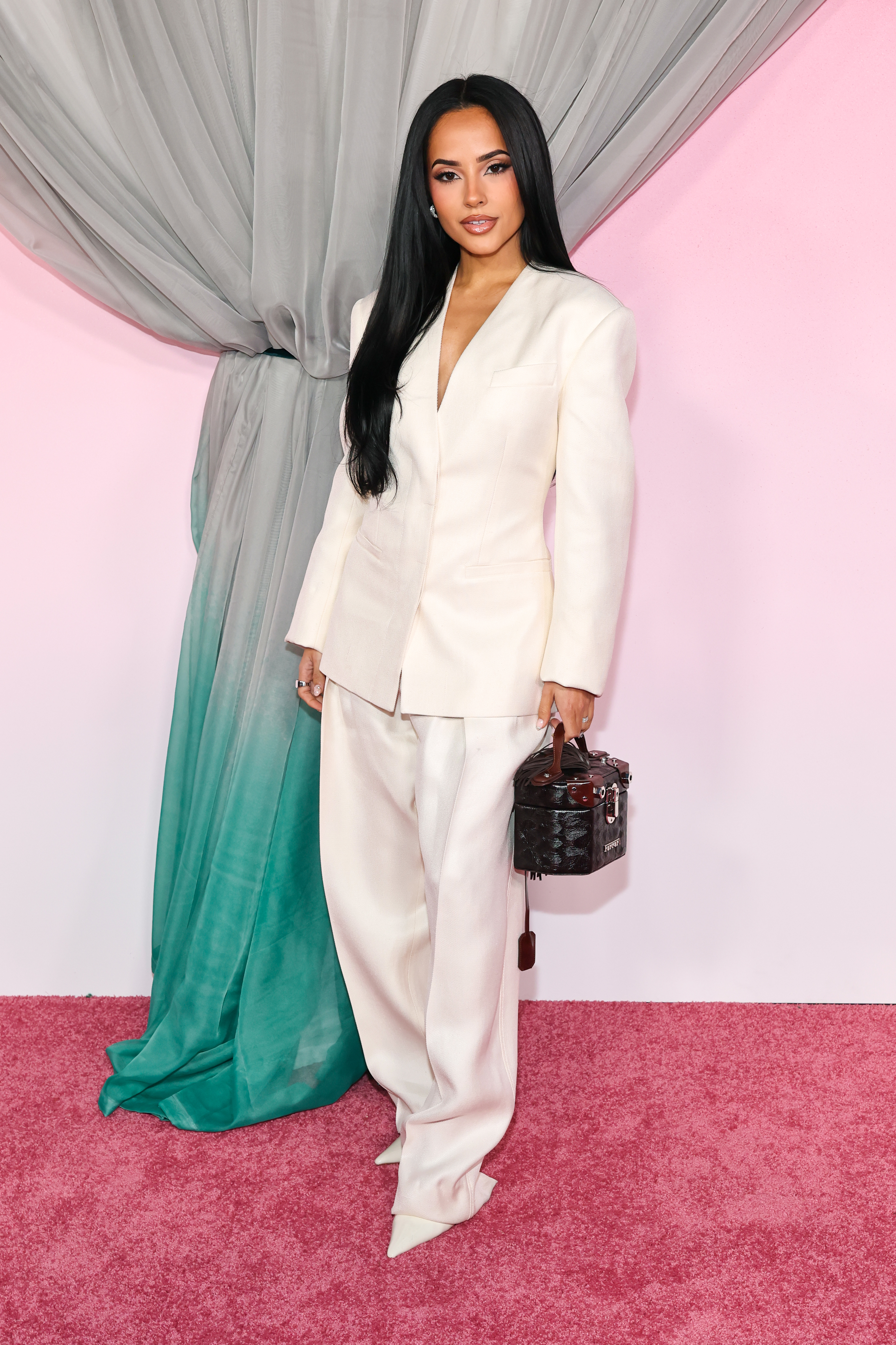 Öne çıkan görünümlerden biri Emma Chamberlain’a aitti. Tercih ettiği ceket elbise, klasik feminen silüetlerin dışında, daha nötr bir çizgide konumlanıyordu. Omuzlarda güçlü bir silüet sunan ve bele indikçe daralan, çapraz fermuar detaylı bu ceket elbise maskülen ve feminen detayları bir arada kullanarak dengeli bir görünüm sunuyor.