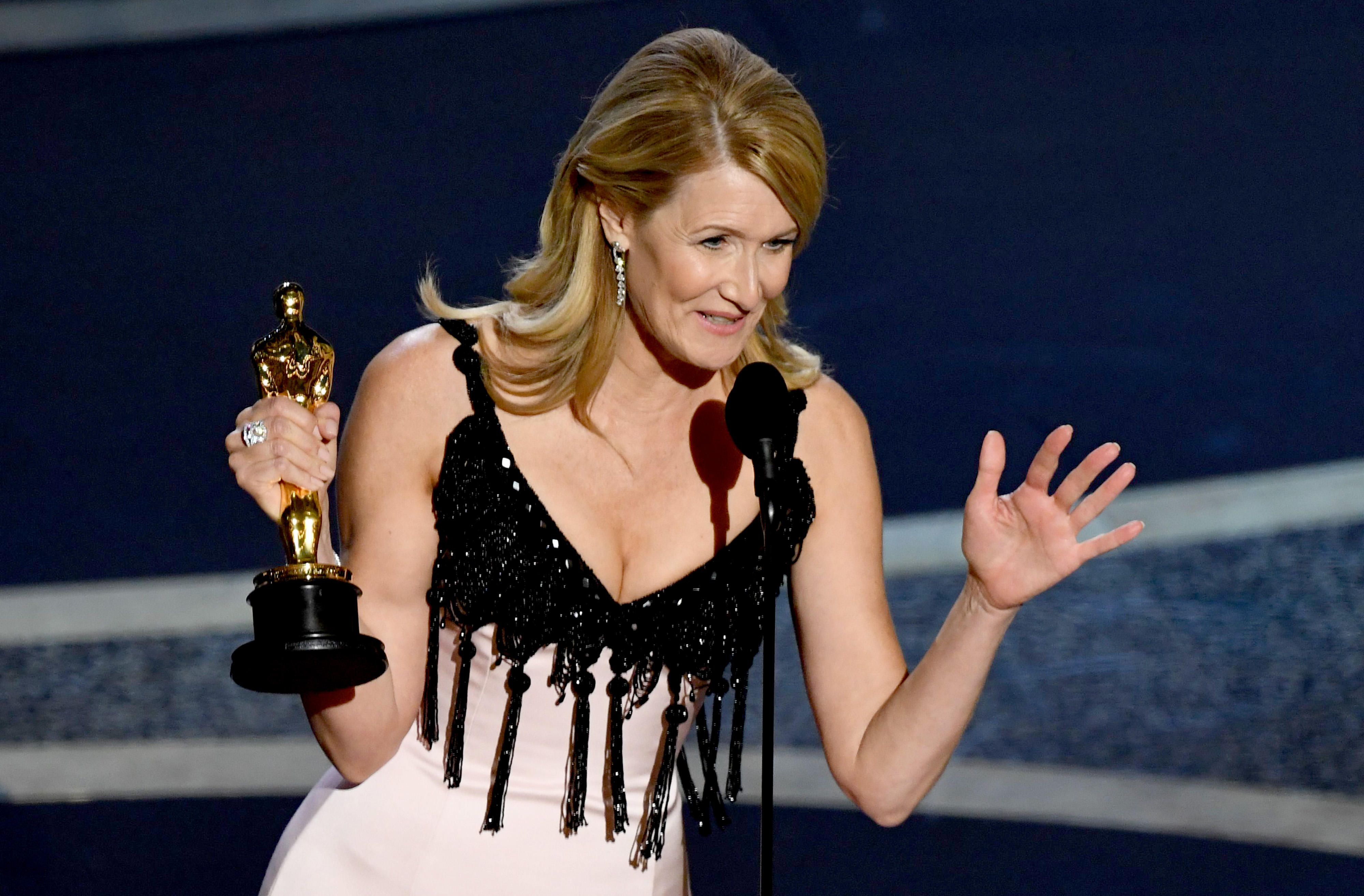 Oscar Ödülü konuşmasında filmin oyuncularına ve senaristi Noah Baumbach’a teşekkür eden Dern, ailesini unutmadı! “Asla gerçek kahramanlarla tanışamayacağınızı söylerler. Ben ise eğer yeteri kadar şanslıysanız onların ebeveynleriniz olacağına inanıyorum. Bu ödülü oyuncu kahramanlarım Diane Ladd ve Bruce Dern ile paylaşıyorum. Sizi çok seviyorum,” diyen Dern, ailesine teşekkür etti.