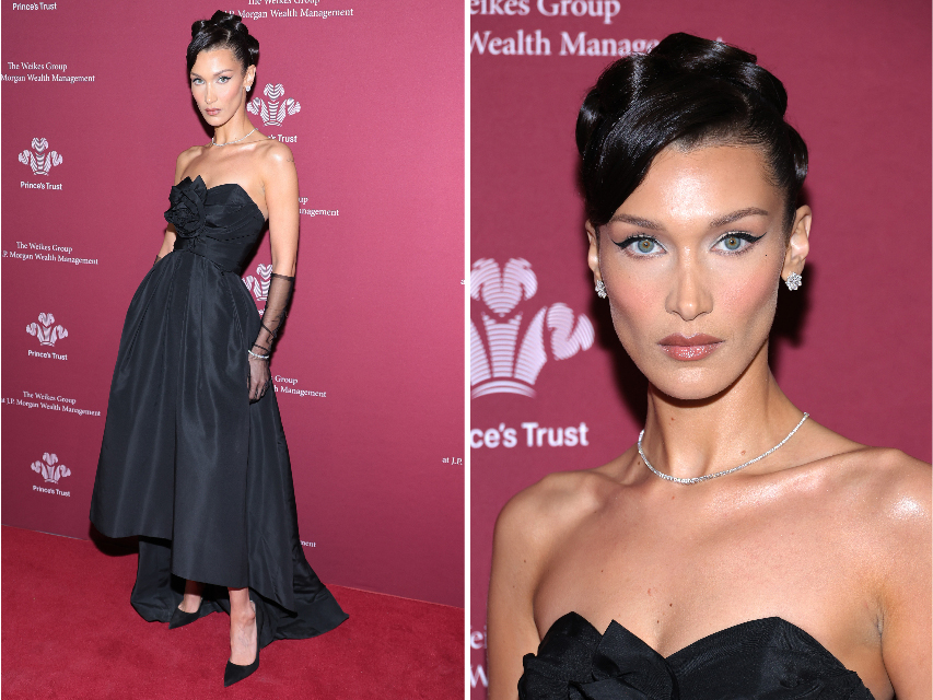 Bella'nın görünümü daha klasik bir çekiciliğe geri döndü: 1959'da Yves Saint Laurent tarafından tasarlanan straplez siyah balo tarzı vintage Dior elbise giydi. Uzun eldivenler, inci ve elmas mücevherler, siyah bir topuklu ve şık topuz ile eski Hollywood vizyonunu tamamladı.