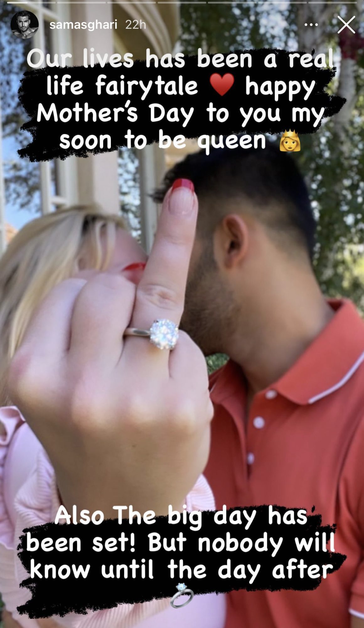 Eylül 2021’de nişanlanan Spears, düğünü hakkında detayları şimdilik gizli tutsa da Asghari ile ilişkilerini Instagram’da paylaşmaktan çekinmiyor. Düğünlerinin tarihinin belli olduğunu söyleyen Spears, nikah ve düğün gerçekleşene kadar fotoğraf paylaşmayacağını ekledi. Anneler Günü’nde nişanlısı için bir fotoğraf paylaşan Asghari fotoğrafının altına “Hayatımız gerçek bir peri masalı oldu” yazmıştı. “Anneler Günün kutlu olsun kraliçe!” yazan Asghari, “Bu arada büyük gün bellli oldu! Ama kimse sonraki güne kadar bilmeyecek” diye ekledi.