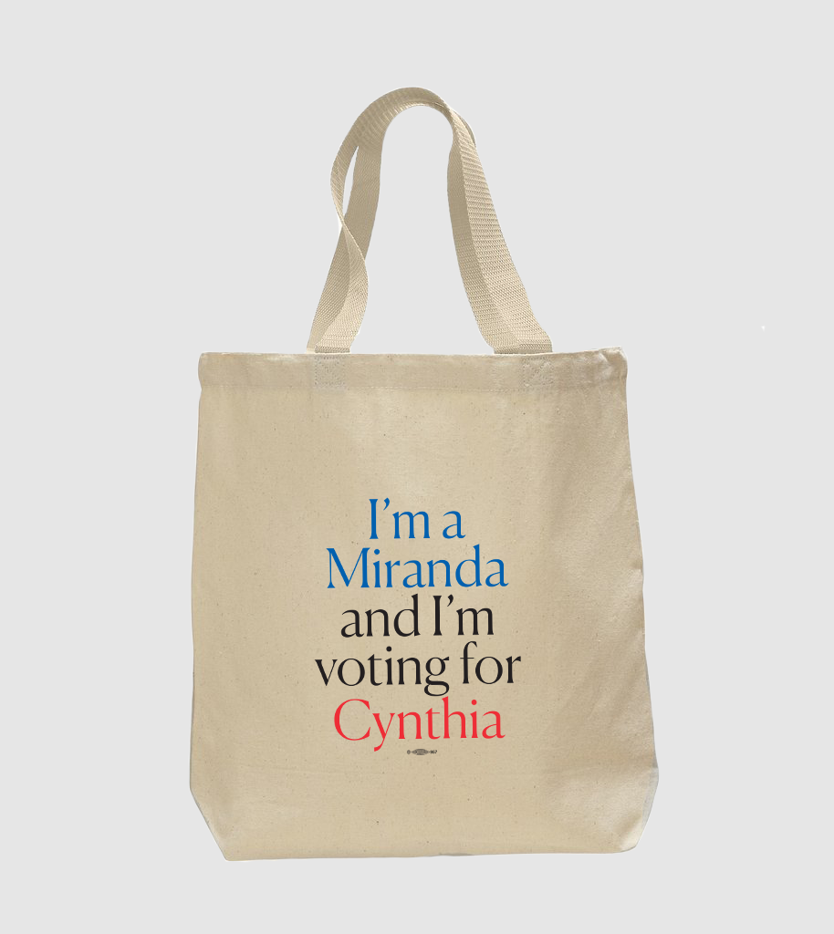 "Miranda'yım ve Cynthia'ya oy veriyorum." $30 store.cynthiafornewyork.com