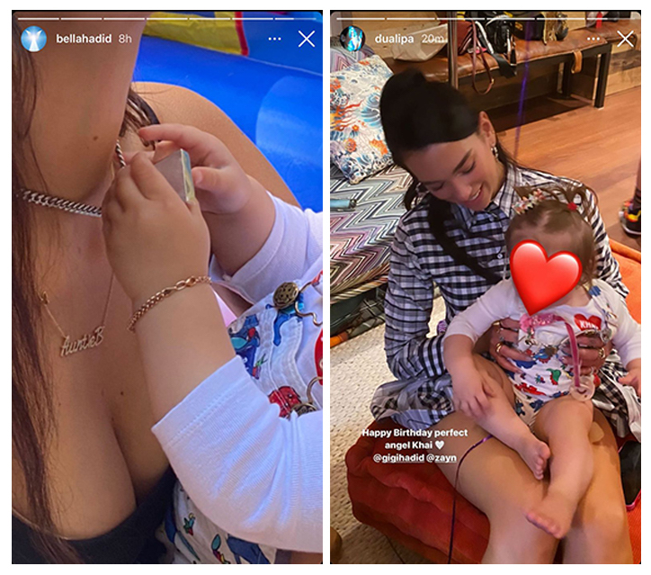 Gigi Hadid ve Zayn Malik, kızları Khai’nin ilk doğum gününü New York’ta kutladılar. Gigi’nin kardeşi Alana Hadid, Zayn, Khai ve Gigi’nin fotoğraflarını paylaşırken, Bella Hadid ise kendisinin ve Khai’nin fotoğrafını Instagram hikayesinden paylaştı. Aynı zamanda kardeşi Anwar Hadid ve sevgilisi Dua Lipa’nın fotoğraflarını paylaşan Bella Hadid, Gigi’nin balonlar ile süslenmiş evinin görüntülerini paylaştı.