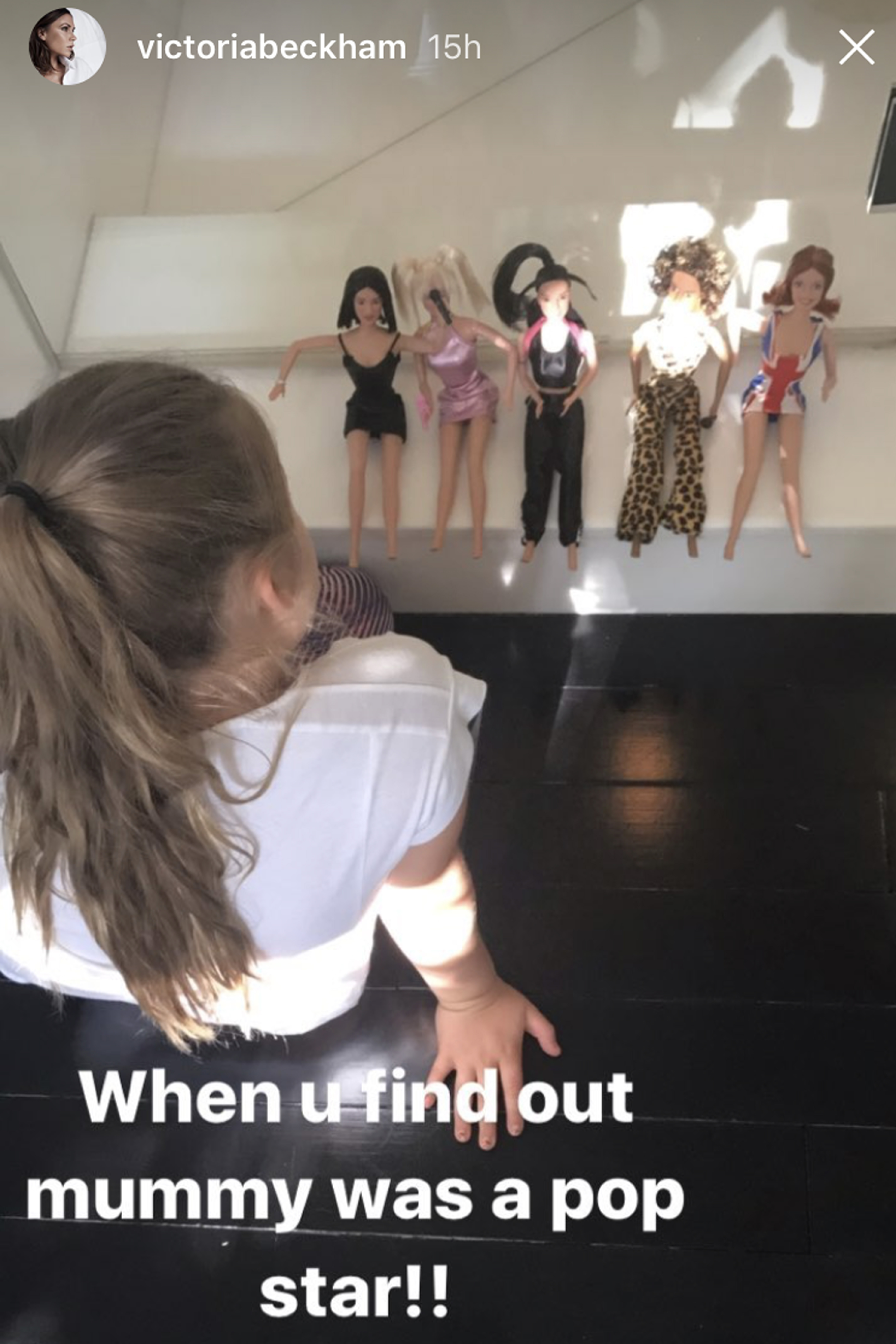 Geçtiğimiz haftasonu, Victoria, altı yaşındaki kızının vintage Spice Girls oyuncaklarıyla oynarken resimlerini çekerek Instagram story’sinde paylaştı. Hatta Victoria “Annenin bir pop yıldızı olduğunu öğrenince!!” yazarak, kızının ilk defa annesinin eski bir yıldız olduğunu öğrendiğini story’sinde belirtti.